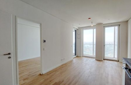 In einzigartiger Lage, direkt bei der U1-Station Kagran und vis-à-vis vom Donau Zentrum, entsteht ein exklusiver, ca. 155m hoher Wohnturm mit 45 Etagen. Die insgesamt 347 Mietwohnungen bieten einen vielfältigen Wohnungsmix: von smart geschnittenen 1,5-Zimmer-Apartments ab ca. 38 m² über komfortable 2-Zimmer-Wohnungen bis hin zu großzügigen 3- und 4-Zimmerwohnungen mit bis zu ca. 80 m².