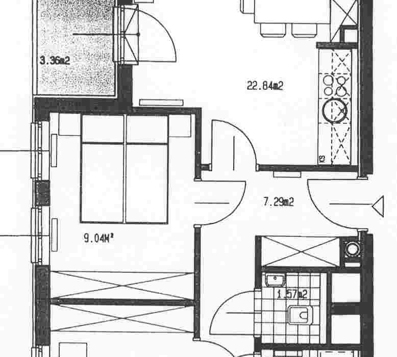 Die neu sanierte Wohnung verfügt über einen Wohnraum mit kleiner Küchenzeile, optisch abgetrennter Schlafnische und einem Bad.