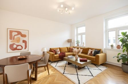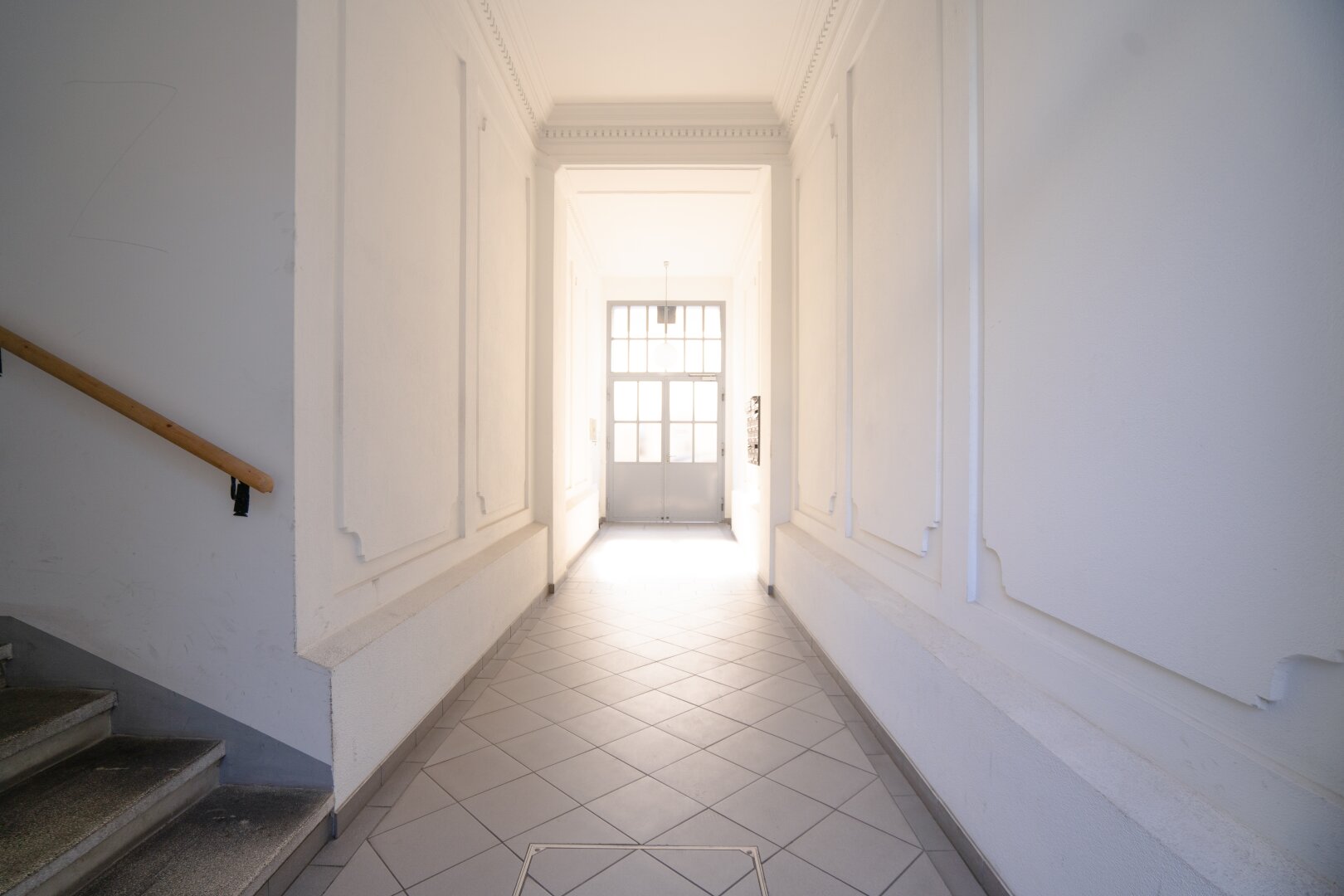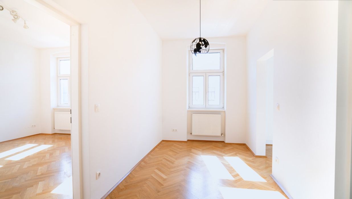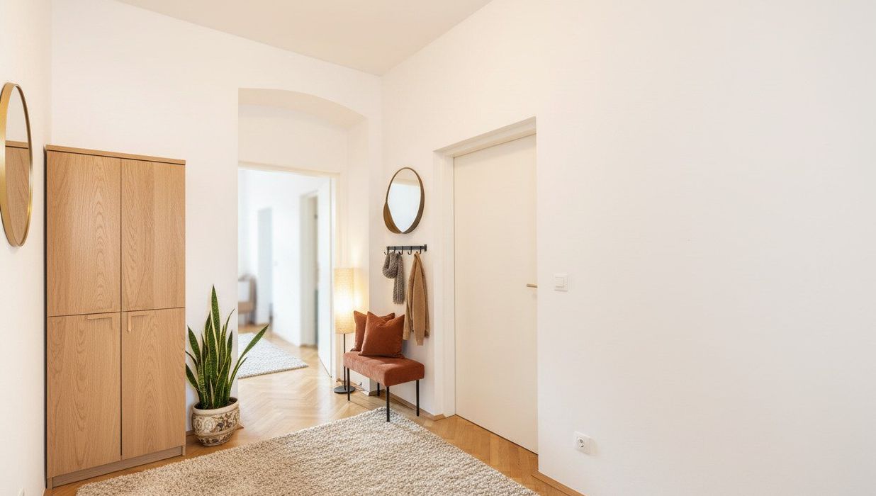 Schon beim Betreten der Wohnung spürt man die Verbindung von Stil und Substanz: Ein klassischer Fischgrätparkett, hohe Decken, großzügige Fenster und ein gepflegtes Raumgefühl, das von Anfang an einlädt.