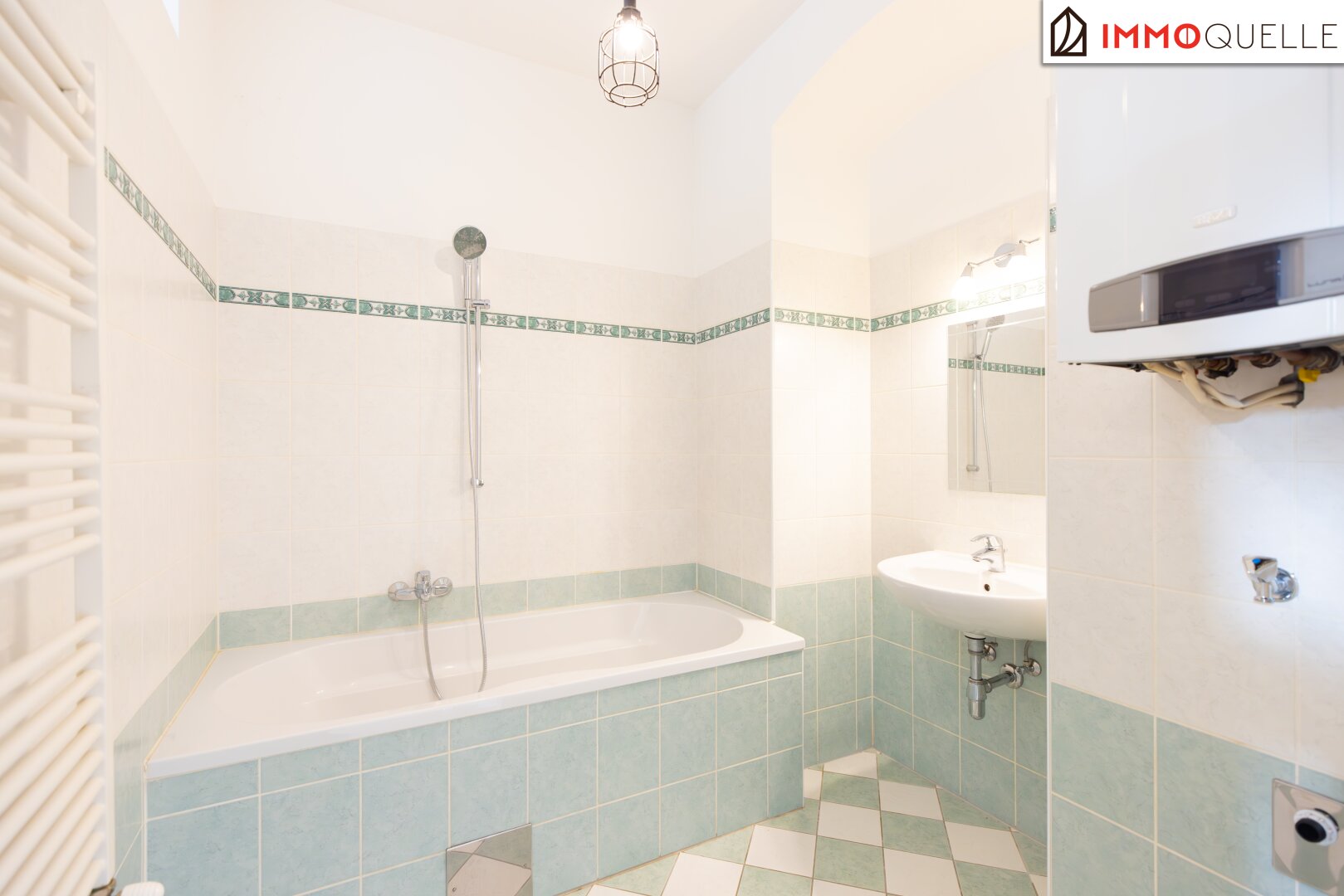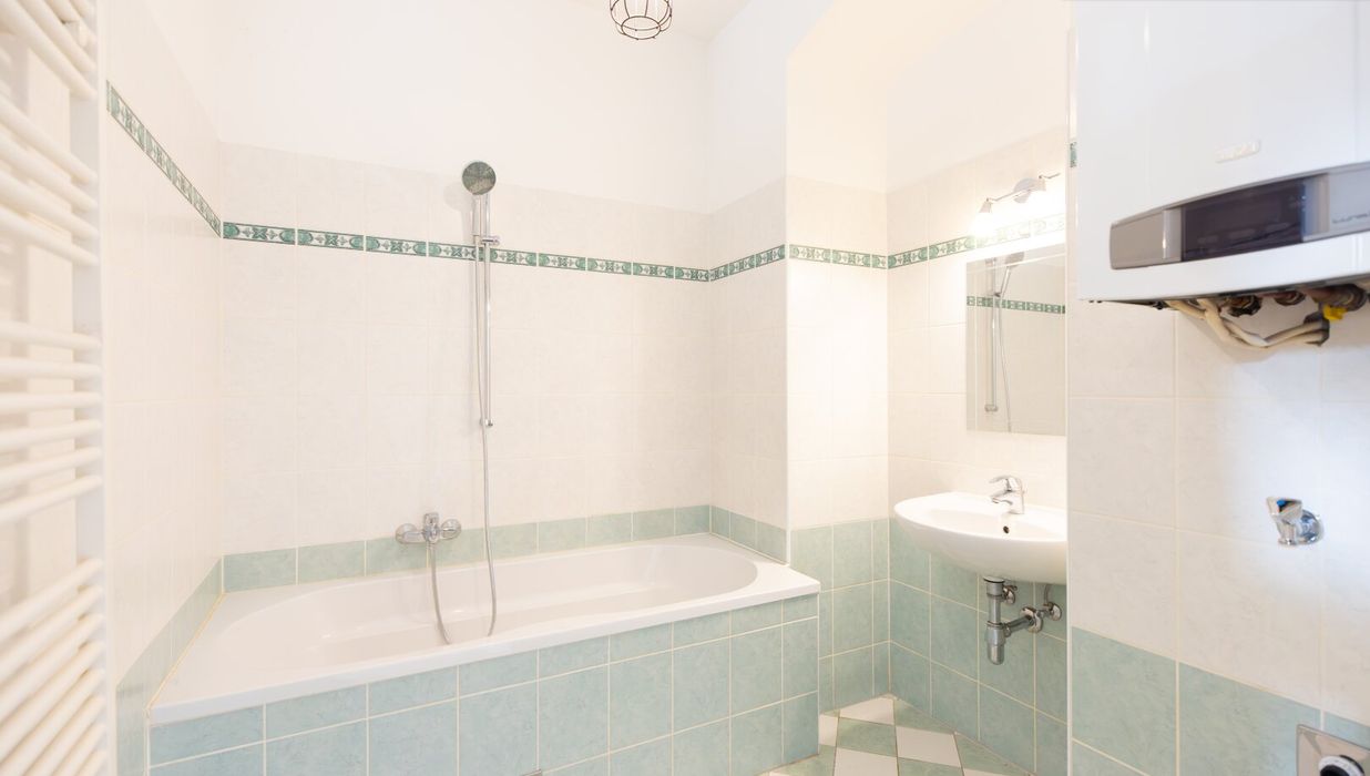 Das Badezimmer ist mit einer Badewanne, einem Waschbecken und einem Handtuchheizkörper ausgestattet; Zudem befinden sich hier der Anschluss für die Waschmaschine sowie ein Boiler zur Warmwasseraufbereitung. Das WC ist separat angelegt - praktisch und komfortabel zugleich.
