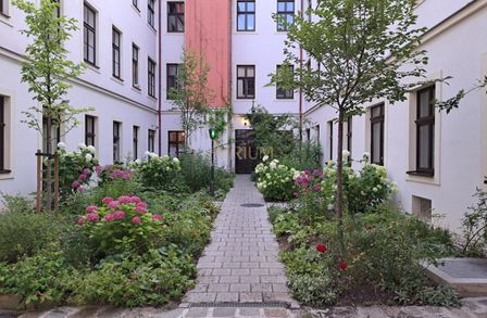 Lage: Erdgeschoss (2. Stiege) in einem generalsanierten, denkmalgeschützten Biedermeierhaus aus dem Jahr 1825 mit ruhigem Innenhofgarten.