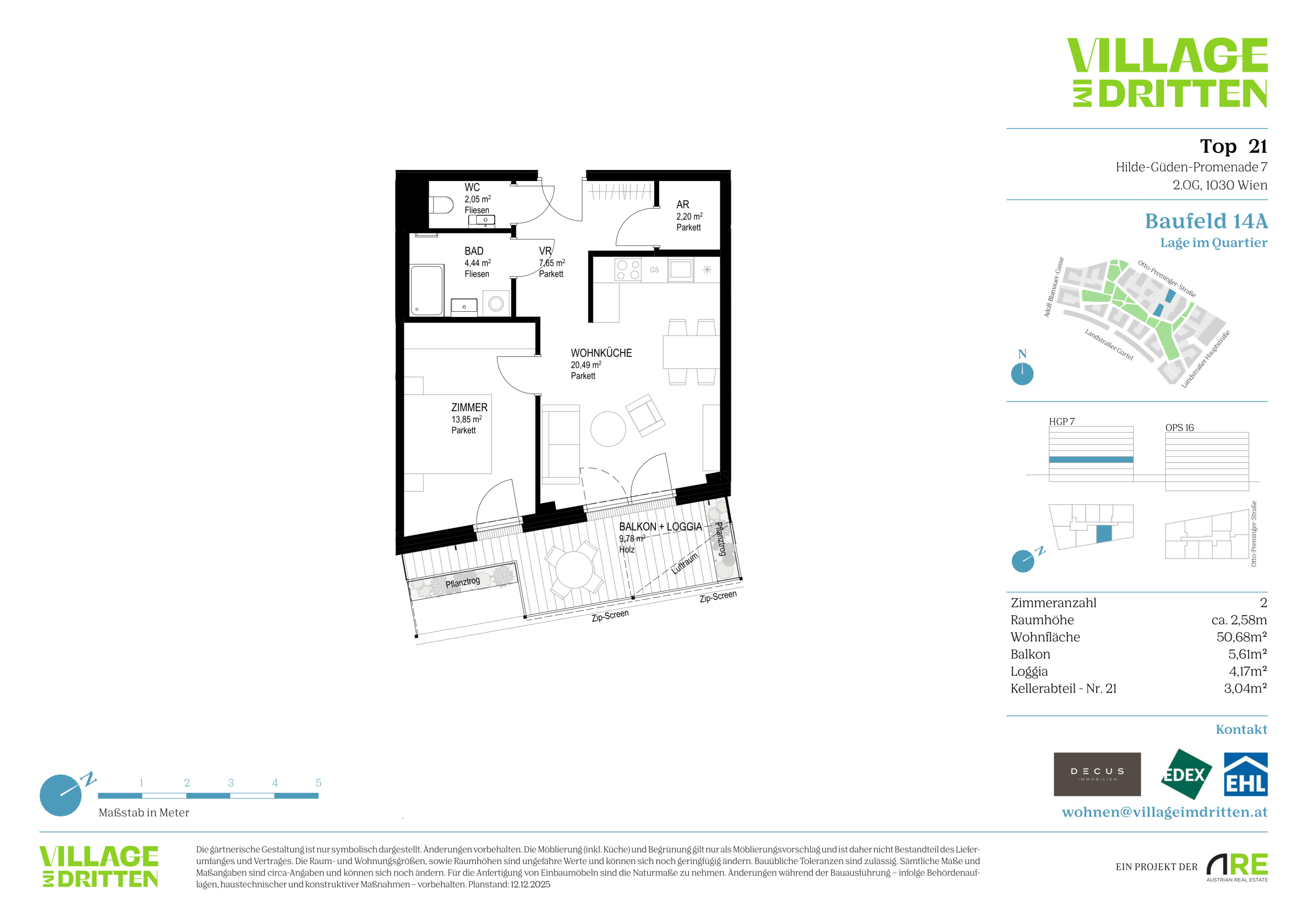 Im dritten Wiener Gemeindebezirk entsteht mit dem VILLAGE IM DRITTEN ein neues Stück Stadt – eines der größten Stadtentwicklungsgebiete Wiens. Auf über elf Hektar entwickelt die ARE Austrian Real Estate gemeinsam mit der Stadt Wien und dem wohnfonds_wien ein lebendiges, nahezu autofreies Quartier mit rund 2.000 W ohnungen, Büro- und Gewerbeflächen, Kinderbetreuung, Bildungseinrichtungen und Nahversorgung. Das grüne Herz bildet der über 2 Hektar große Bert-Brecht-Park –eine Oase für Erholung, Begegnung und Spiel. Alle Däche r , die nicht begehbar sind, werden begrünt. Sharing- Angebote, Einkaufsmöglichkeiten und Gastronomie liegen direkt vor der Haustüre. Nachhaltigkeit, kurze W ege und hohe Lebensqualität sind die Leitlinien dieses neuen Stadtviertels.