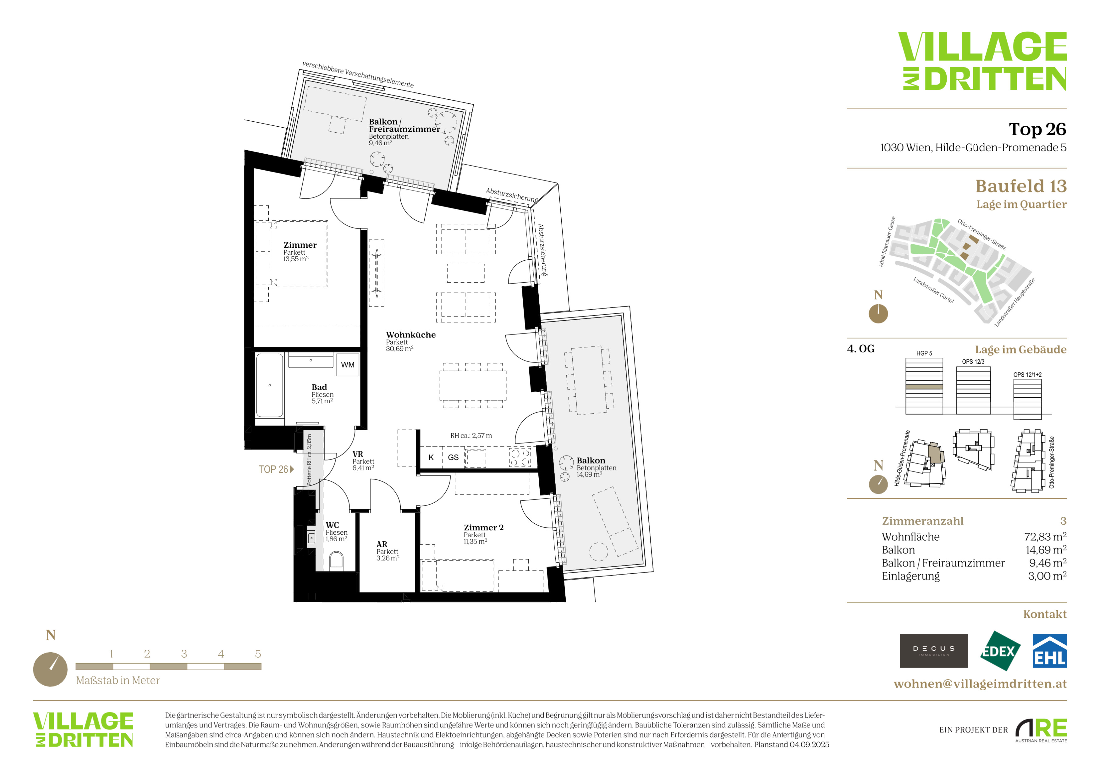 Im dritten Wiener Gemeindebezirk entsteht mit dem VILLAGE IM DRITTEN ein neues Stück Stadt – eines der größten Stadtentwicklungsgebiete Wiens . Auf über elf Hektar entwickelt die ARE Austrian Real Estate gemeinsam mit der Stadt Wien und dem wohnfonds_wien ein lebendiges, nahezu autofreies Quartier mit rund 2.000 Wohnungen, Büro- und Gewerbeflächen, Kinderbetreuung, Bildungseinrichtungen und Nahversorgung.