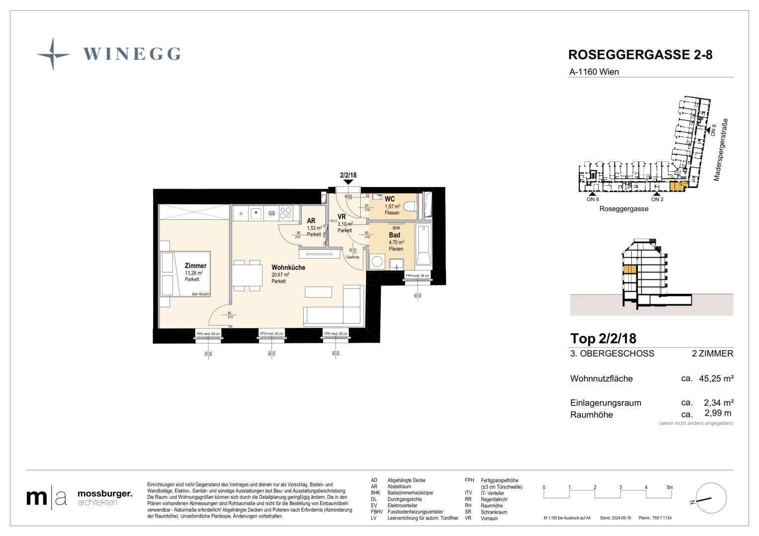 In der Roseggergasse 2–8, nahe des Wilhelminenbergs in 1160 Wien, entstehen insgesamt 124 exklusive Eigentumswohnungen. Die Wohnflächen variieren zwischen 39 und 245 m² und bieten zwischen 2 und 6 Zimmern. Darüber hin-aus bereichern private Freibereiche wie Eigengärten, Balkone, Terrassen, Loggien und spektakuläre Dachterrassen mit Blick auf die umliegenden Wiener Berge das Wohnerlebnis.