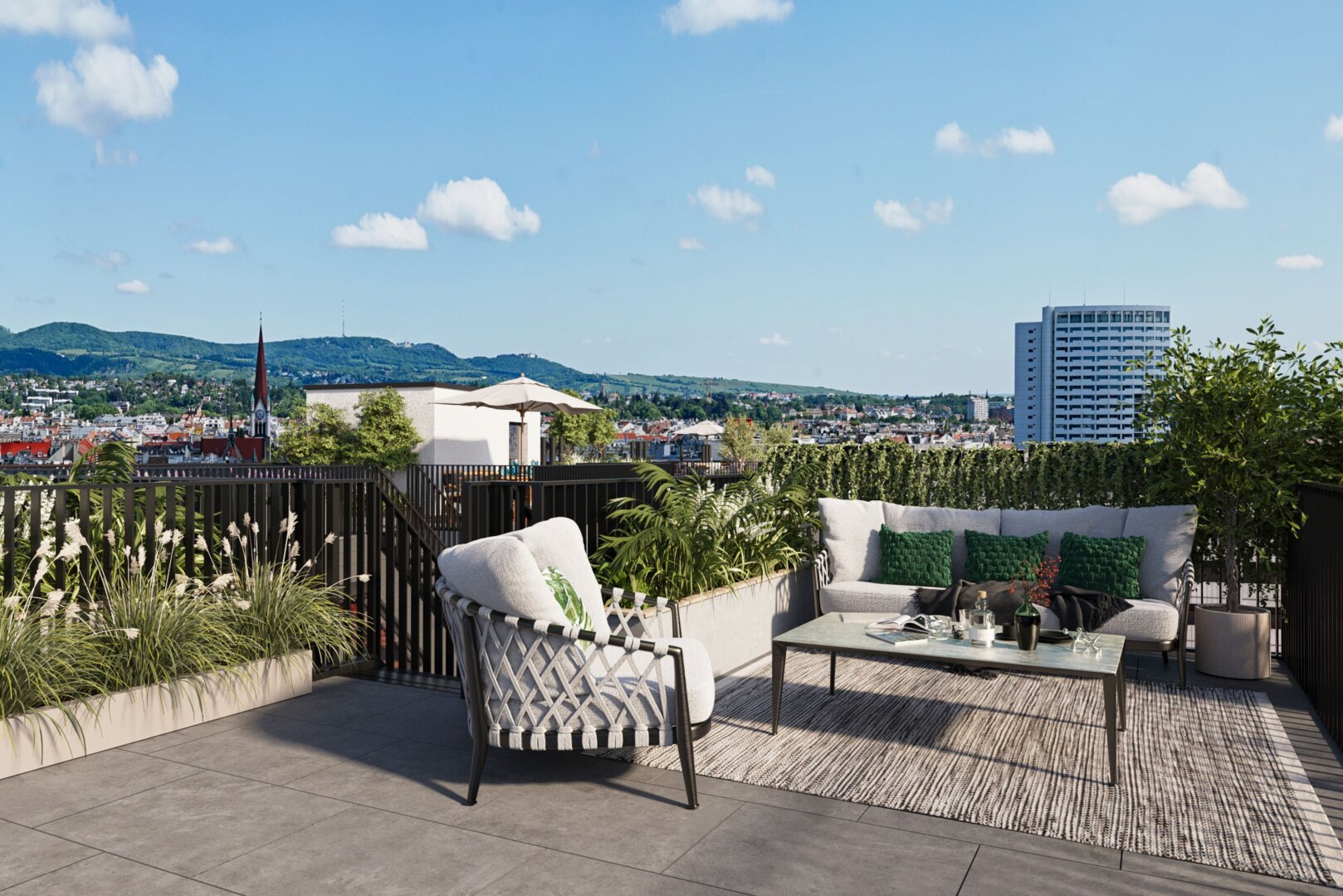Die exklusive Nutzung durch die BewohnerInnen macht diese Innenhof-Ruheoase zu einem besonderen Asset des Projekts und sorgt für eine außer-gewöhnliche Wohnqualität. Erleben Sie modernes Wohnen mit grünem Mehrwert – willkommen im GRAND GARDEN!