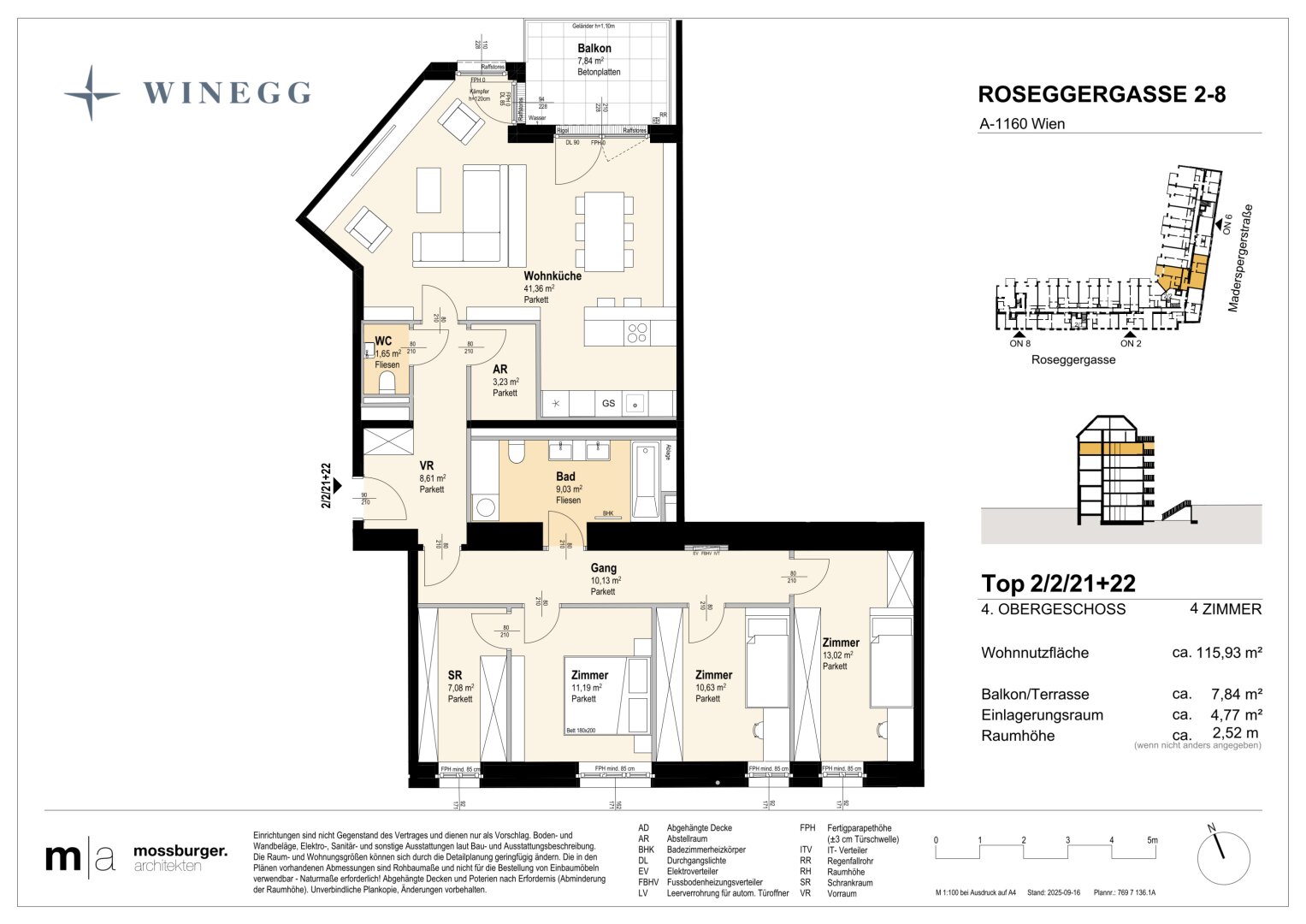 In der Roseggergasse 2–8, nahe des Wilhelminenbergs in 1160 Wien, entstehen insgesamt 124 exklusive Eigentumswohnungen. Die Wohnflächen variieren zwischen 39 und 245 m² und bieten zwischen 2 und 6 Zimmern. Darüber hin-aus bereichern private Freibereiche wie Eigengärten, Balkone, Terrassen, Loggien und spektakuläre Dachterrassen mit Blick auf die umliegenden Wiener Berge das Wohnerlebnis.