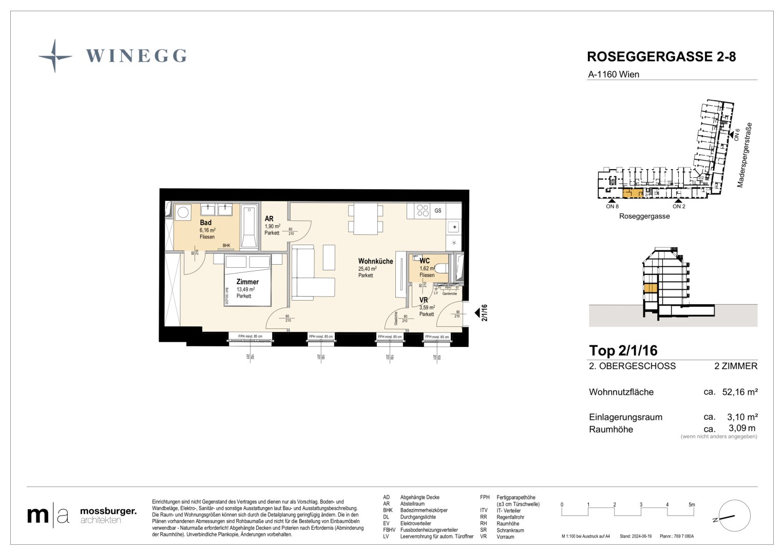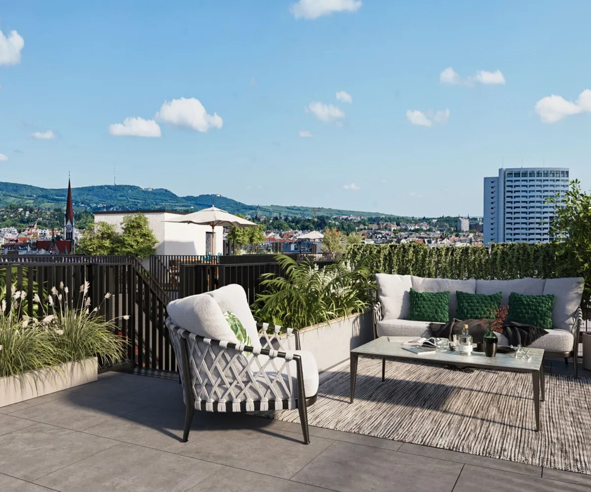 In der Roseggergasse 2–8, nahe des Wilhelminenbergs in 1160 Wien, entstehen insgesamt 124 exklusive Eigentumswohnungen. Die Wohnflächen variieren zwischen 39 und 245 m² und bieten zwischen 2 und 6 Zimmern. Darüber hin-aus bereichern private Freibereiche wie Eigengärten, Balkone, Terrassen, Loggien und spektakuläre Dachterrassen mit Blick auf die umliegenden Wiener Berge das Wohnerlebnis.