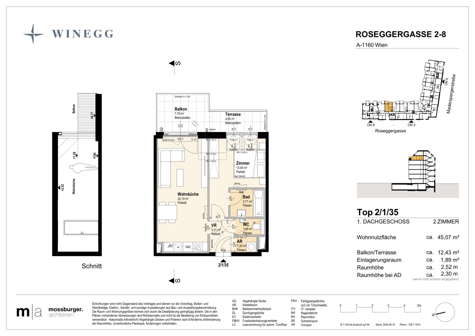 In der Roseggergasse 2–8, nahe des Wilhelminenbergs in 1160 Wien, entstehen insgesamt 124 exklusive Eigentumswohnungen. Die Wohnflächen variieren zwischen 39 und 245 m² und bieten zwischen 2 und 6 Zimmern. Darüber hin-aus bereichern private Freibereiche wie Eigengärten, Balkone, Terrassen, Loggien und spektakuläre Dachterrassen mit Blick auf die umliegenden Wiener Berge das Wohnerlebnis.