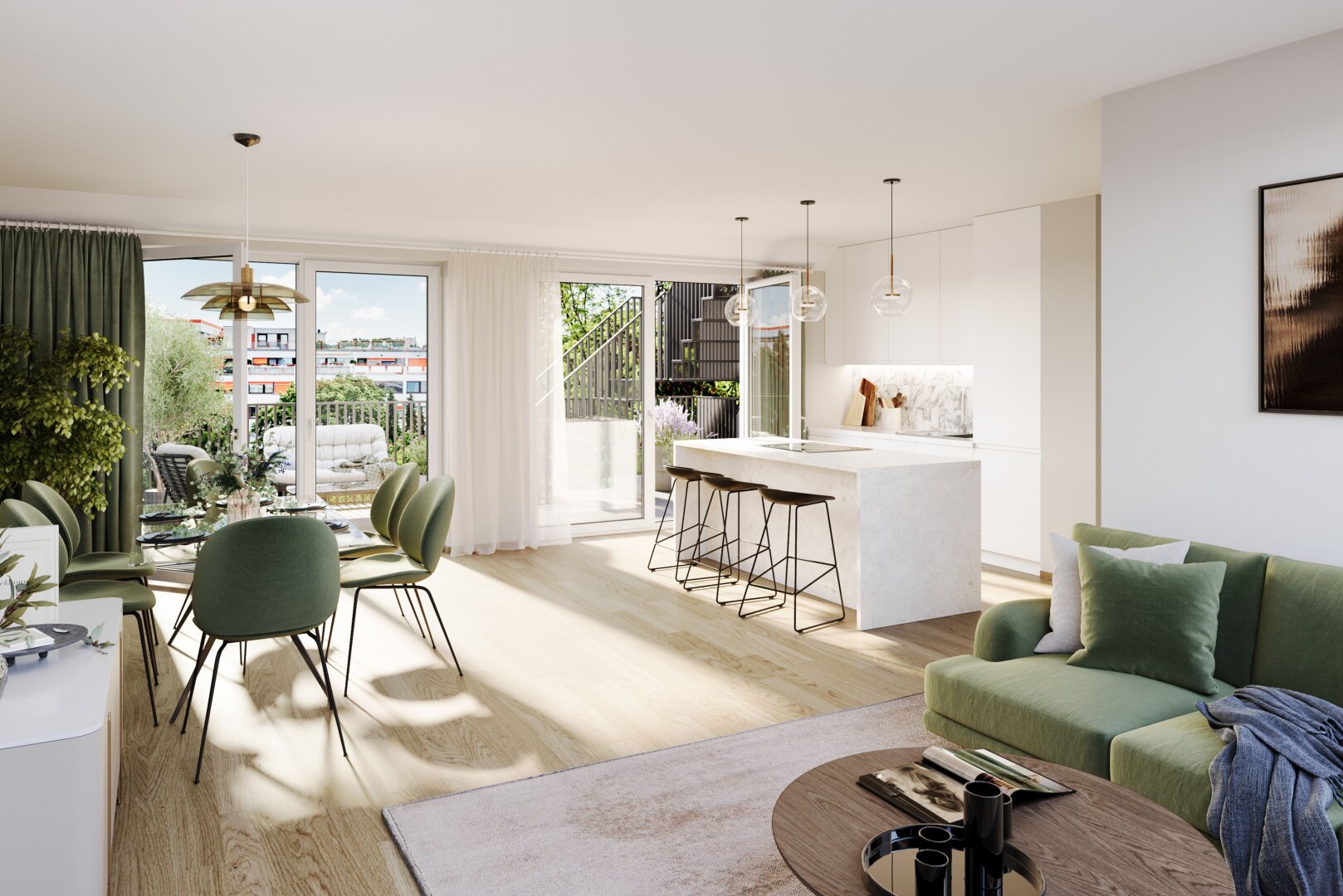 Das absolute Highlight des Wohnprojekts GRAND GARDEN ist die rund 1.000 m² große Innenhof-Ruheoase – ein einzigartiger Rückzugsort für alle Generationen. Hier trifft Natur auf urbanes Wohnen und schafft eine außergewöhnliche Lebensqualität.