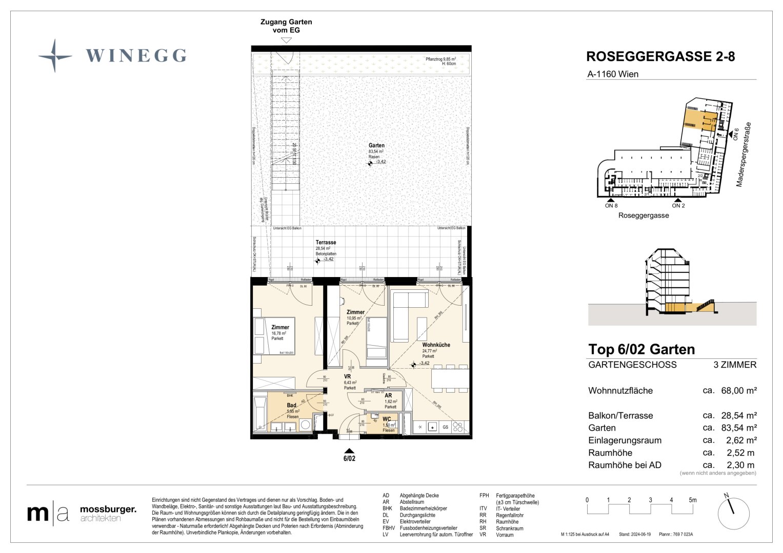 In der Roseggergasse 2–8, nahe des Wilhelminenbergs in 1160 Wien, entstehen insgesamt 124 exklusive Eigentumswohnungen. Die Wohnflächen variieren zwischen 39 und 245 m² und bieten zwischen 2 und 6 Zimmern. Darüber hin-aus bereichern private Freibereiche wie Eigengärten, Balkone, Terrassen, Loggien und spektakuläre Dachterrassen mit Blick auf die umliegenden Wiener Berge das Wohnerlebnis.