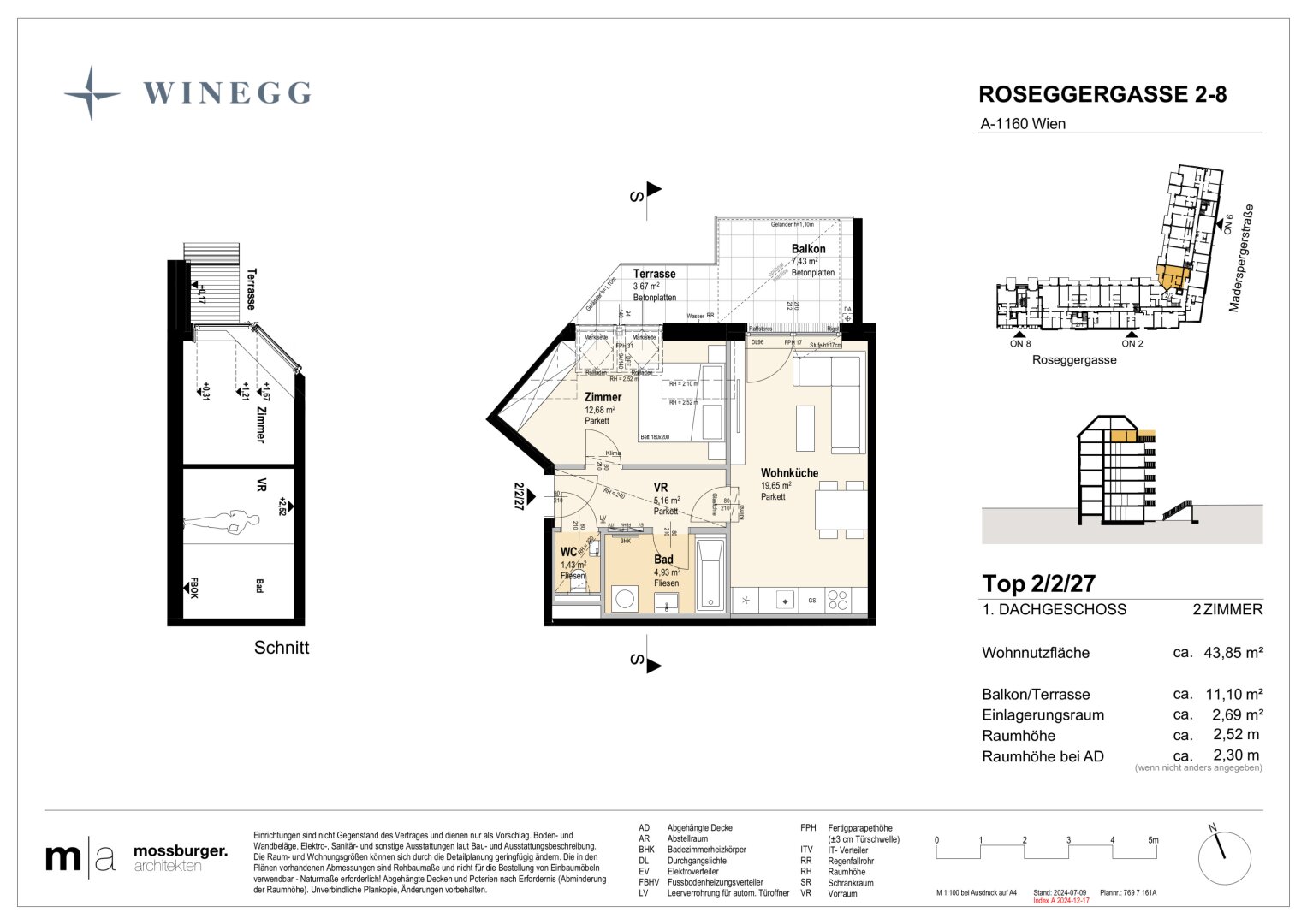 In der Roseggergasse 2–8, nahe des Wilhelminenbergs in 1160 Wien, entstehen insgesamt 124 exklusive Eigentumswohnungen. Die Wohnflächen variieren zwischen 39 und 245 m² und bieten zwischen 2 und 6 Zimmern. Darüber hin-aus bereichern private Freibereiche wie Eigengärten, Balkone, Terrassen, Loggien und spektakuläre Dachterrassen mit Blick auf die umliegenden Wiener Berge das Wohnerlebnis.