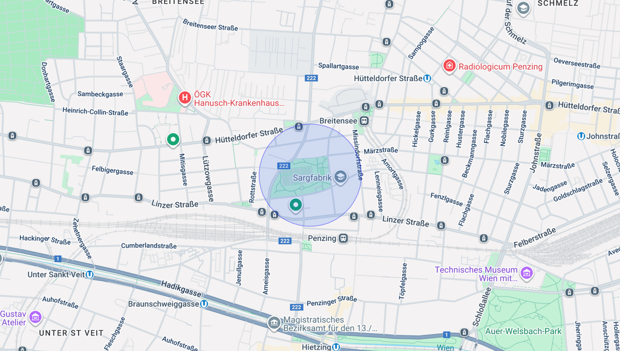 Weiters befindet sich in unmittelbarer Nähe der Matznerpark und die Sargfabrik. Zweiteres lädt nicht nur zum Essen ein sondern auch Kultur wird hier groß geschrieben. In der Sargfabrik gibt es laufend Veranstaltungen für Groß und Klein- vom Puppentheater bis zum Konzert- alles was das Herz begehrt.