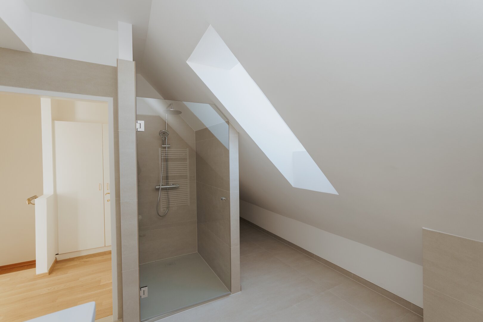Im oberen Stock befinden sich die Schlafzimmer und ein Badezimmer welches keine Wünsche offen lässt. Genießen Sie entspannende Momente in dem komplett neu errichteten Bad.