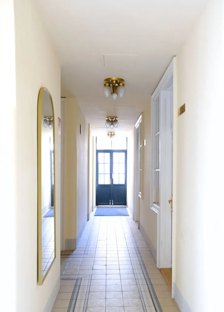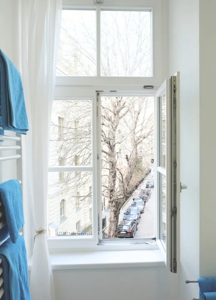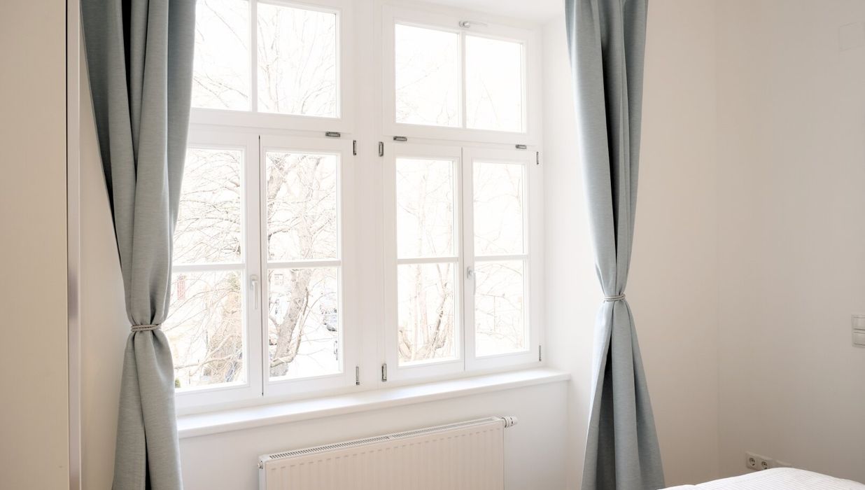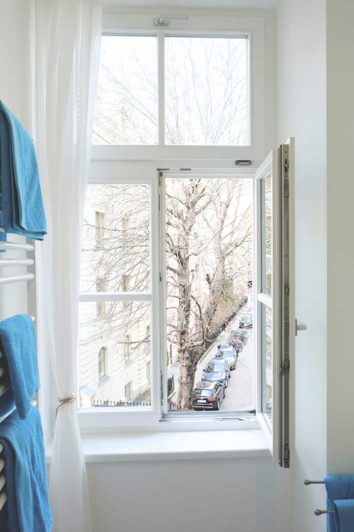 Schlafzimmer und Bad schauen in einen Vorgarten mit großen Bäumen und sind somit auch sehr hell. Dieser Vorgarten liegt am Ende einer Sackgasse mit besonders schönen Altbauten, somit ist die Wohnung gesamt sehr ruhig und man hört keinerlei Verkehrsgeräusche.