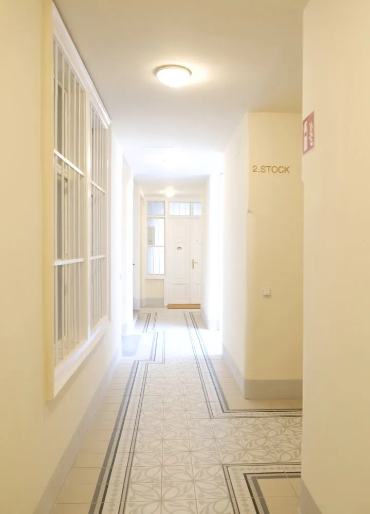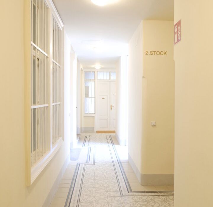 Die Ende 2023 generalsanierte und außergewöhnlich schöne 54m² Altbauwohnung befindet sich in prominenter Lage, in einem wunderschönen generalsanierten und eleganten Alt-Wiener-Haus der Jahrhundertwende im 2. Stock. Küche und Wohnzimmer schauen in einen sehr hellen Innenhof. D