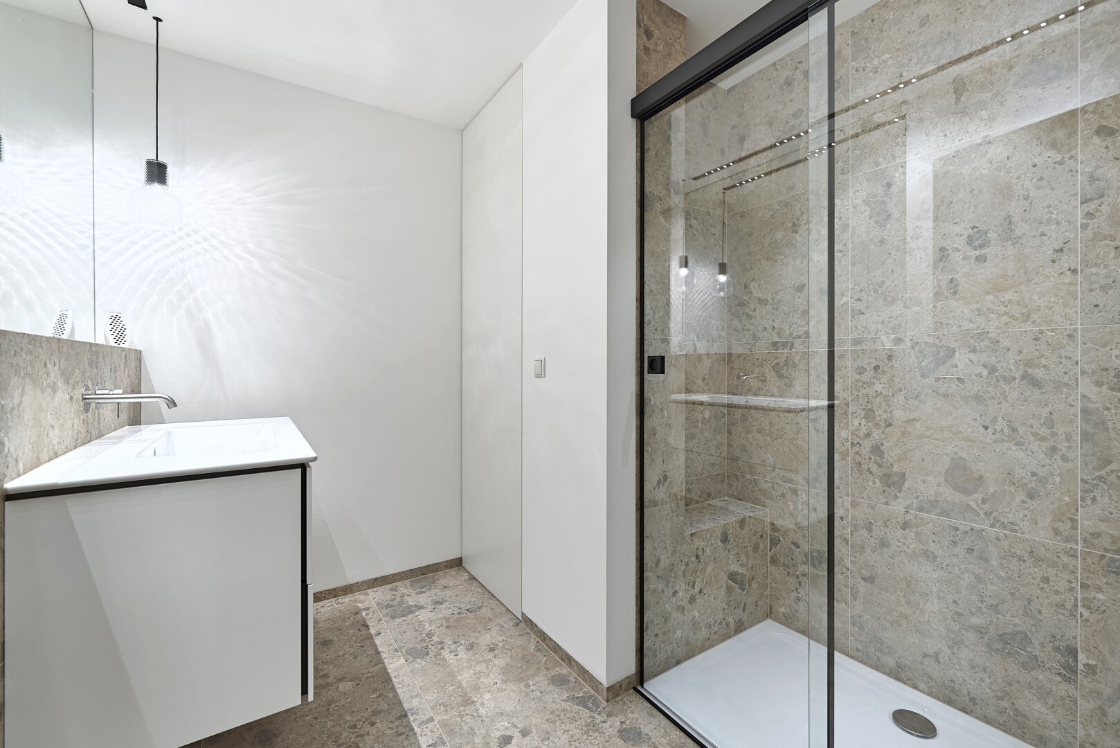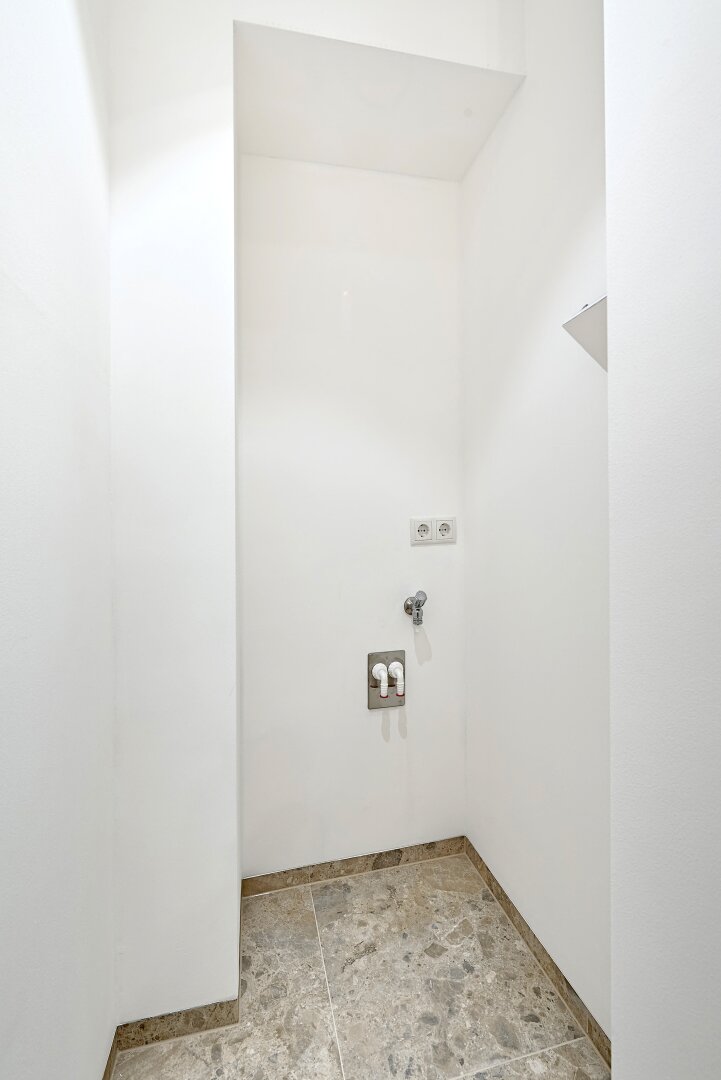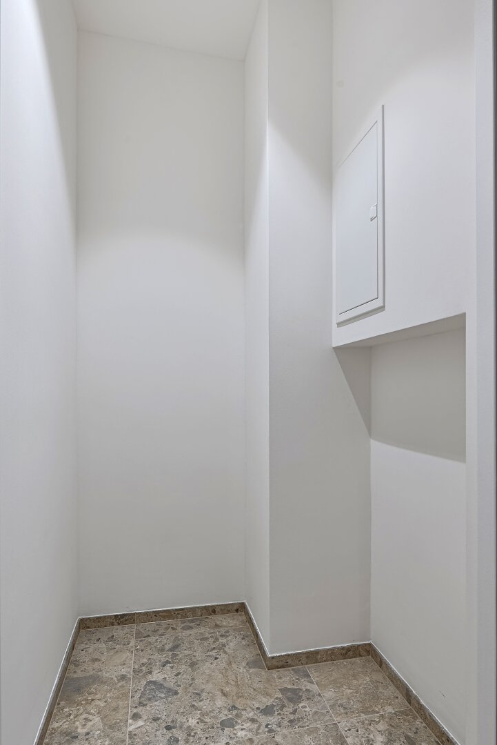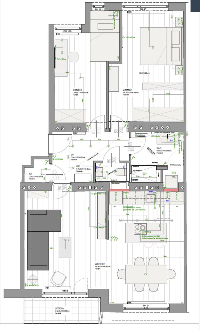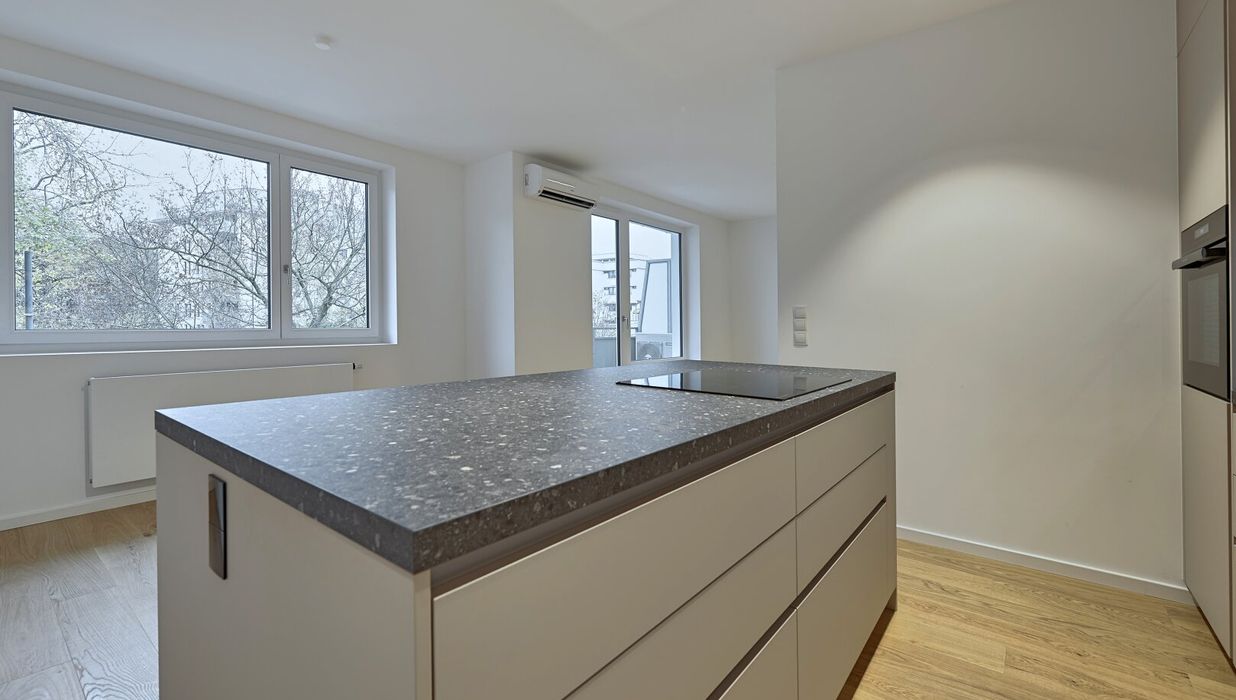 Vom Wohnzimmer aus, kann direkt die Loggia betreten werden. Durch die großen Fenster ist dieses mit südlicher Orientierung stets hell. Die Wohnküche ist mit einer Kochinsel ausgestattet, die viel Stauraum bietet. Die offene Küche ist mit modernen Geräten ausgestattet und lädt dazu ein, kulinarische Köstlichkeiten zuzubereiten. Die beiden Schlafzimmer bieten ausreichend Platz für Ruhe und Erholung, während das geschmackvoll gestaltete Badezimmer zum Entspannen einlädt. Dieses wurde mit einer ebenerdig begehbaren Duschkabine ausgestattet. Weiters zeichnet es sich durch hochwertige Fliesen, eine große Spiegelwand und einen Handtuchtrockner aus. In den beiden Schlafzimmern und dem Wohnzimmer sorgt eine Klimaanlage für angenehme Temperaturen.