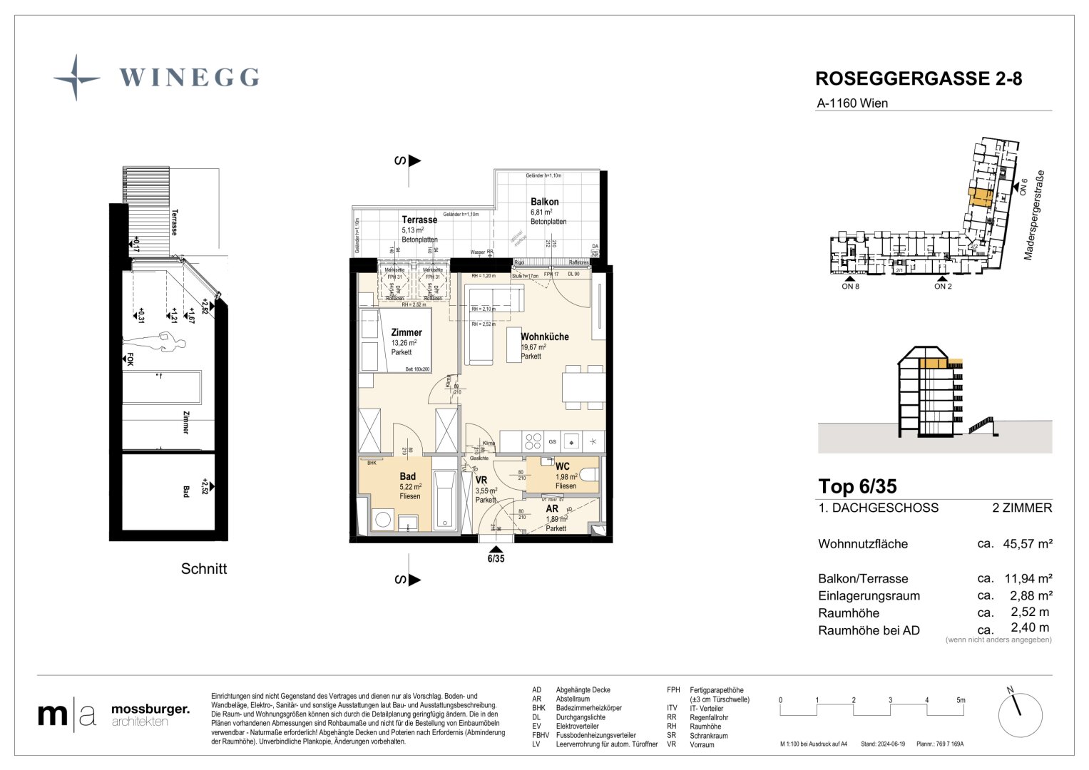 In der Roseggergasse 2–8, nahe des Wilhelminenbergs in 1160 Wien, entstehen insgesamt 124 exklusive Eigentumswohnungen. Die Wohnflächen variieren zwischen 39 und 245 m² und bieten zwischen 2 und 6 Zimmern. Darüber hin-aus bereichern private Freibereiche wie Eigengärten, Balkone, Terrassen, Loggien und spektakuläre Dachterrassen mit Blick auf die umliegenden Wiener Berge das Wohnerlebnis.