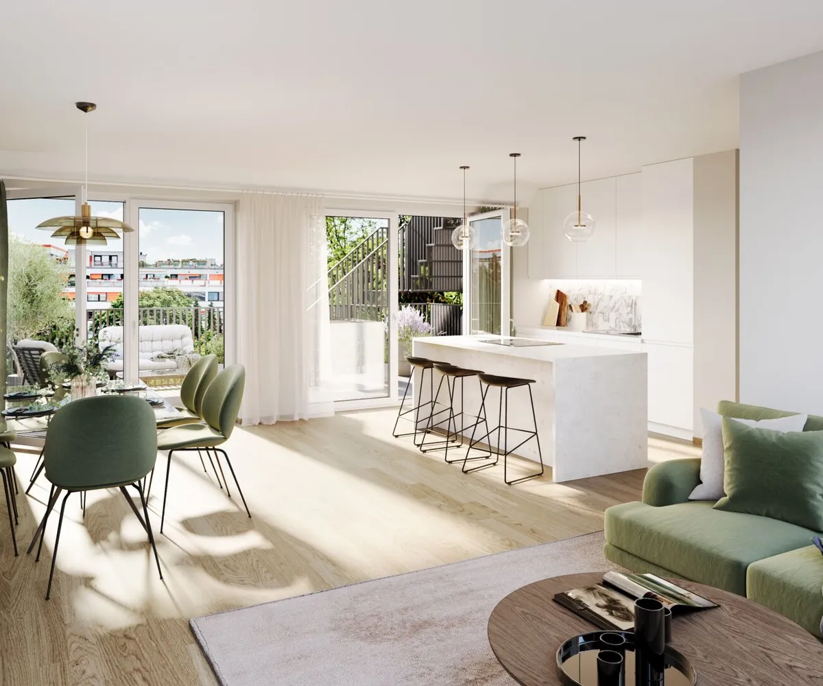 Das absolute Highlight des Wohnprojekts GRAND GARDEN ist die rund 1.000 m² große Innenhof-Ruheoase – ein einzigartiger Rückzugsort für alle Generationen. Hier trifft Natur auf urbanes Wohnen und schafft eine außergewöhnliche Lebensqualität.