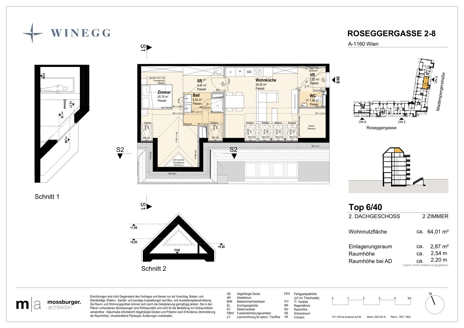 In der Roseggergasse 2–8, nahe des Wilhelminenbergs in 1160 Wien, entstehen insgesamt 124 exklusive Eigentumswohnungen. Die Wohnflächen variieren zwischen 39 und 245 m² und bieten zwischen 2 und 6 Zimmern. Darüber hin-aus bereichern private Freibereiche wie Eigengärten, Balkone, Terrassen, Loggien und spektakuläre Dachterrassen mit Blick auf die umliegenden Wiener Berge das Wohnerlebnis.