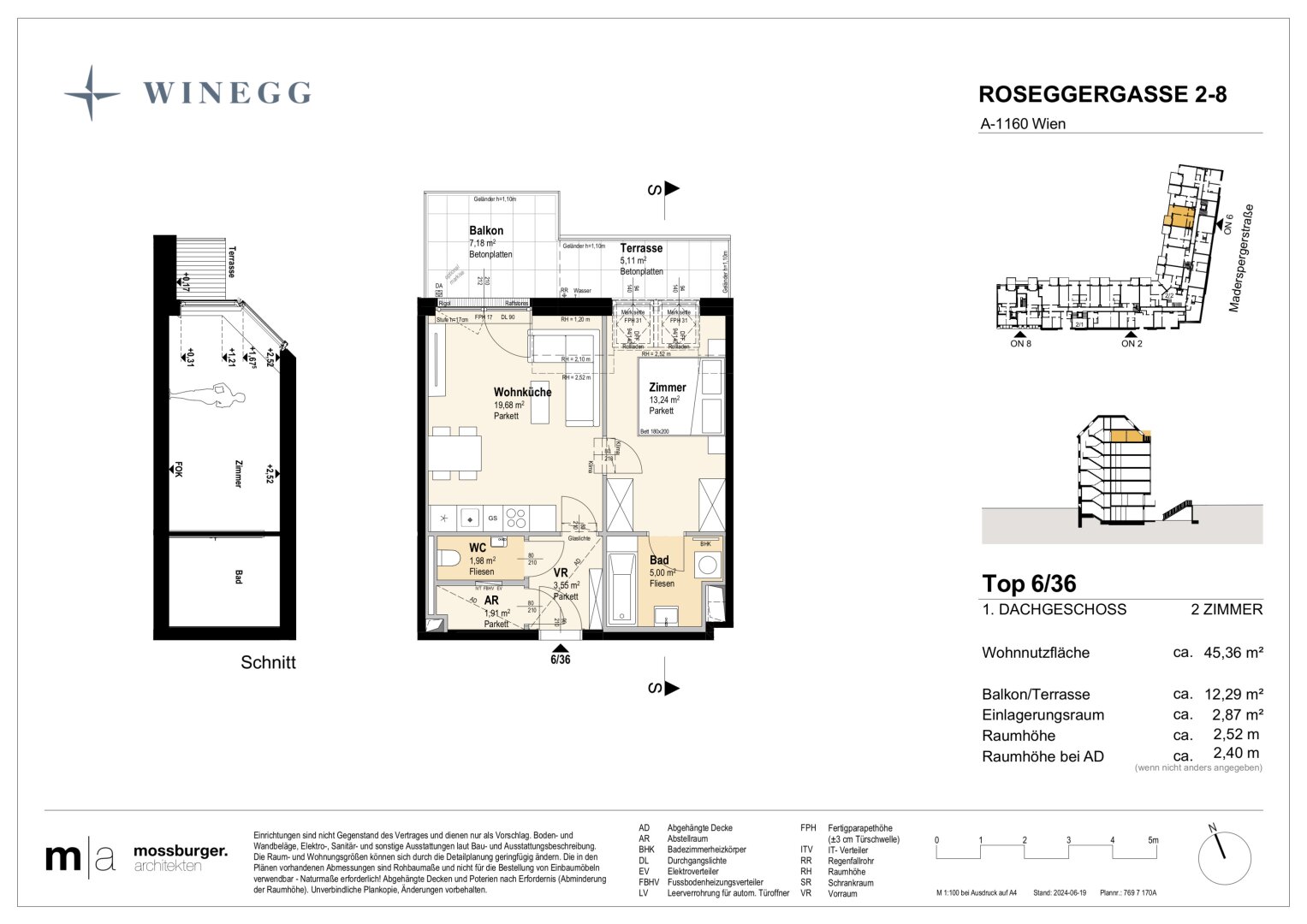 In der Roseggergasse 2–8, nahe des Wilhelminenbergs in 1160 Wien, entstehen insgesamt 124 exklusive Eigentumswohnungen. Die Wohnflächen variieren zwischen 39 und 245 m² und bieten zwischen 2 und 6 Zimmern. Darüber hin-aus bereichern private Freibereiche wie Eigengärten, Balkone, Terrassen, Loggien und spektakuläre Dachterrassen mit Blick auf die umliegenden Wiener Berge das Wohnerlebnis.