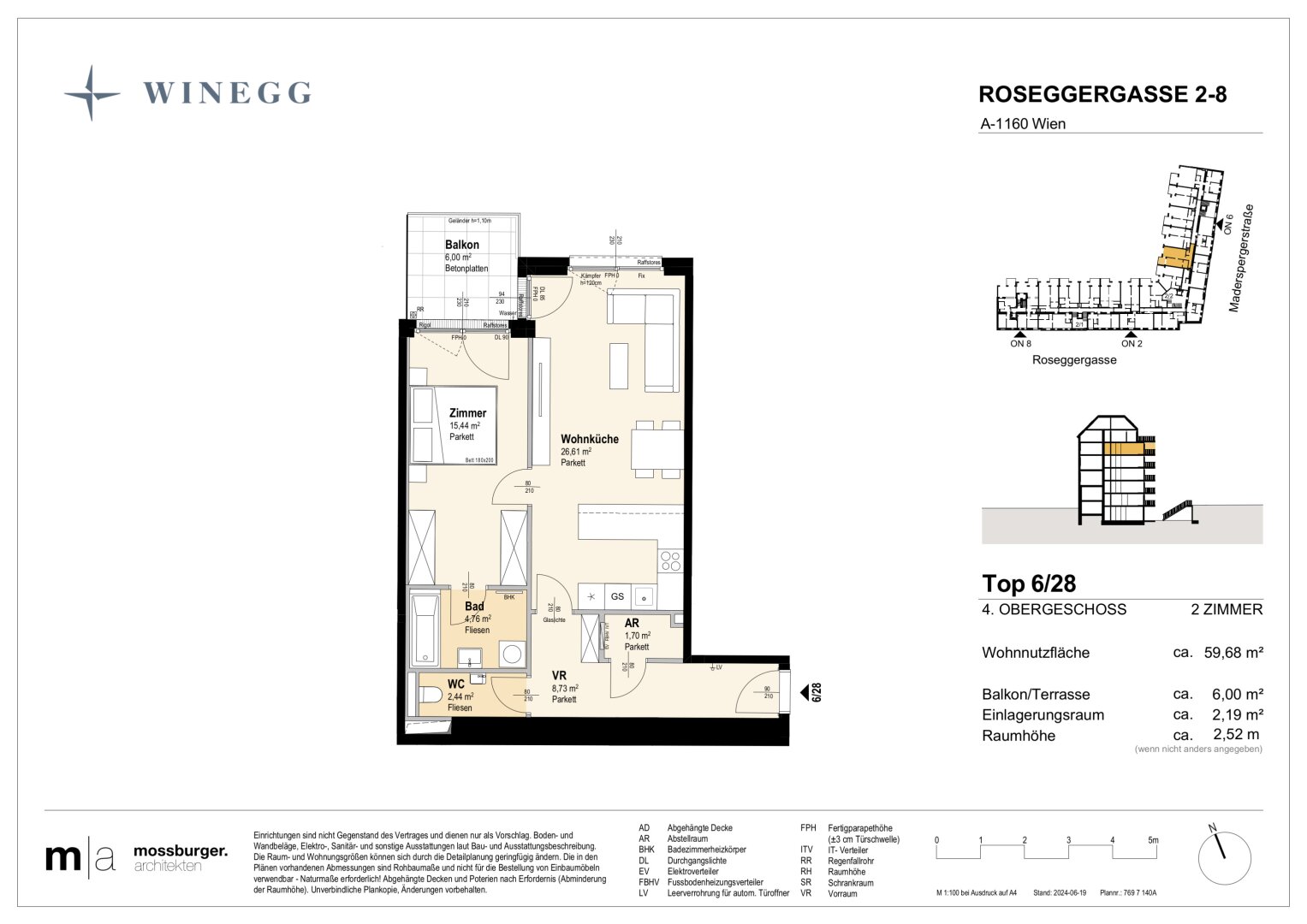 In der Roseggergasse 2–8, nahe des Wilhelminenbergs in 1160 Wien, entstehen insgesamt 124 exklusive Eigentumswohnungen. Die Wohnflächen variieren zwischen 39 und 245 m² und bieten zwischen 2 und 6 Zimmern. Darüber hin-aus bereichern private Freibereiche wie Eigengärten, Balkone, Terrassen, Loggien und spektakuläre Dachterrassen mit Blick auf die umliegenden Wiener Berge das Wohnerlebnis.