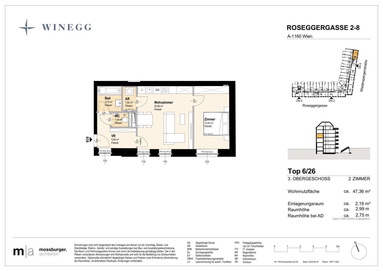 In der Roseggergasse 2–8, nahe des Wilhelminenbergs in 1160 Wien, entstehen insgesamt 124 exklusive Eigentumswohnungen. Die Wohnflächen variieren zwischen 39 und 245 m² und bieten zwischen 2 und 6 Zimmern. Darüber hin-aus bereichern private Freibereiche wie Eigengärten, Balkone, Terrassen, Loggien und spektakuläre Dachterrassen mit Blick auf die umliegenden Wiener Berge das Wohnerlebnis.