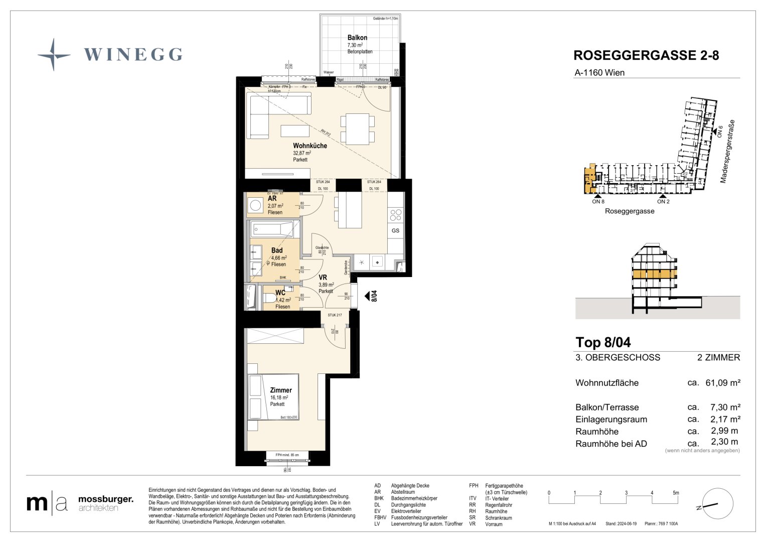 In der Roseggergasse 2–8, nahe des Wilhelminenbergs in 1160 Wien, entstehen insgesamt 124 exklusive Eigentumswohnungen. Die Wohnflächen variieren zwischen 39 und 245 m² und bieten zwischen 2 und 6 Zimmern. Darüber hin-aus bereichern private Freibereiche wie Eigengärten, Balkone, Terrassen, Loggien und spektakuläre Dachterrassen mit Blick auf die umliegenden Wiener Berge das Wohnerlebnis.