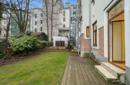 Zentrale Infrastruktur, Cafés, Kultur und öffentliche Anbindung – und dennoch absolute Ruhe dank hofseitiger Lage.