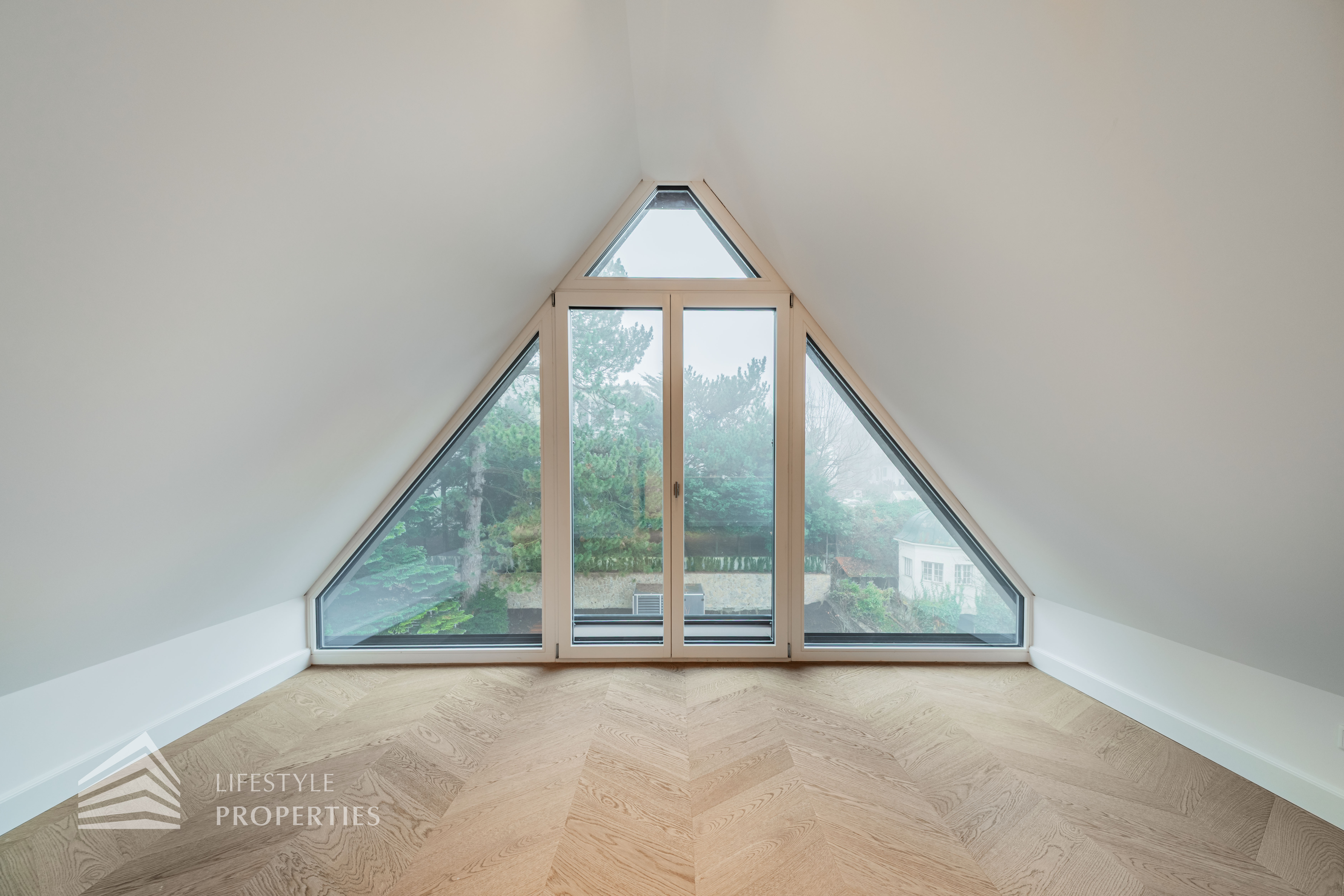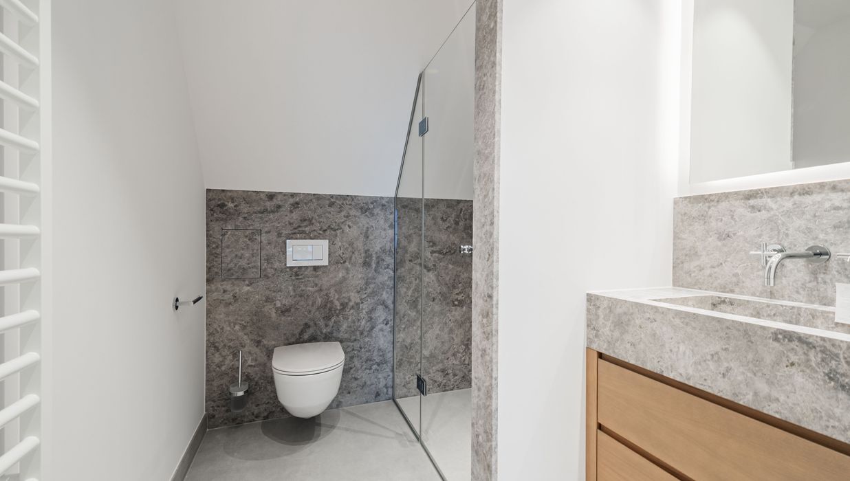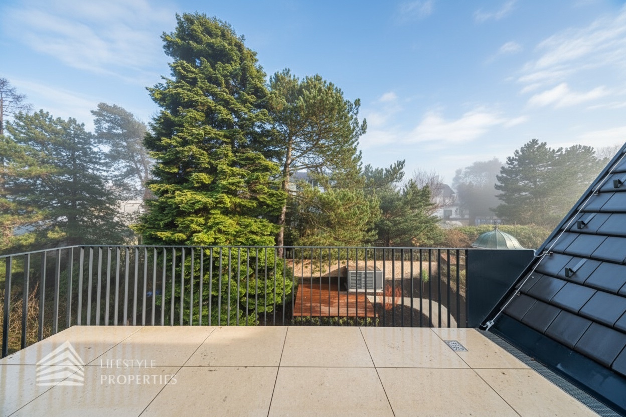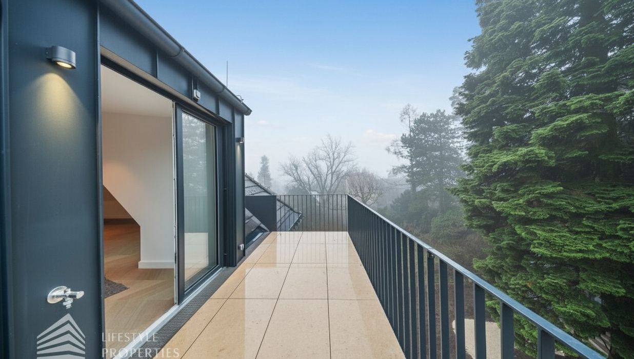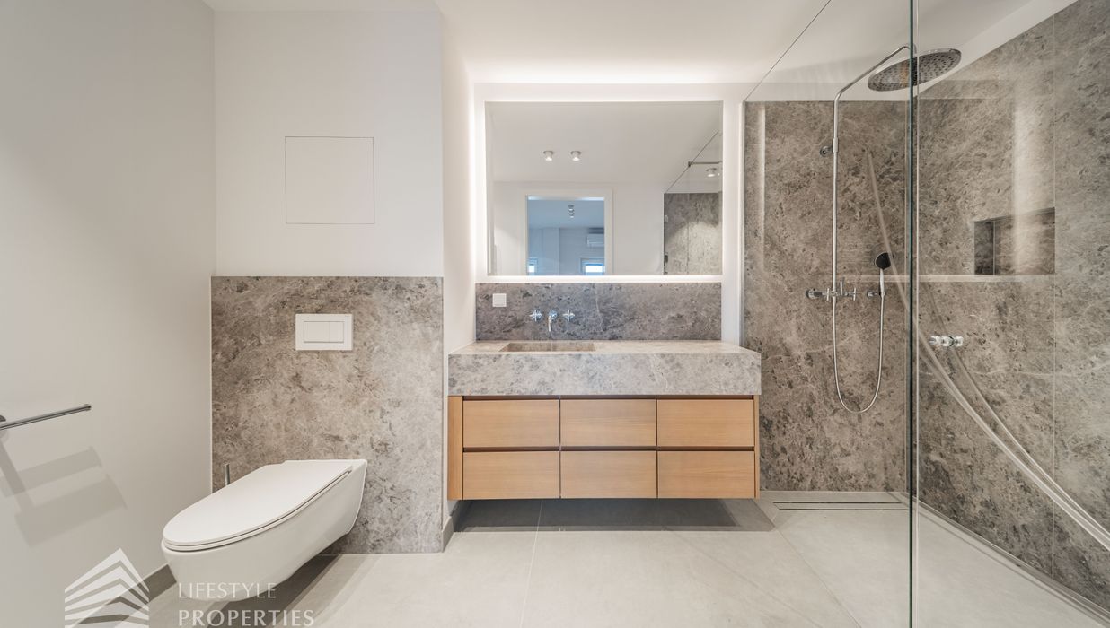 Auf derselben Ebene liegen zwei großzügige Schlafzimmer, die jeweils als eigenständige Rückzugsbereiche mit Badezimmer en suite ausgeführt sind. Ein Schlafzimmer verfügt über eine Fläche von ca. 16 m² und ist mit einem angeschlossenen Badezimmer von rund 7 m² ausgestattet. Das zweite Schlafzimmer präsentiert sich besonders großzügig und umfasst ca. 48 m² inklusive eines großen Badezimmers mit Badewanne, wodurch ein nahezu suite-artiger Wohnbereich entsteht, der höchsten Komfort und Privatsphäre bietet.