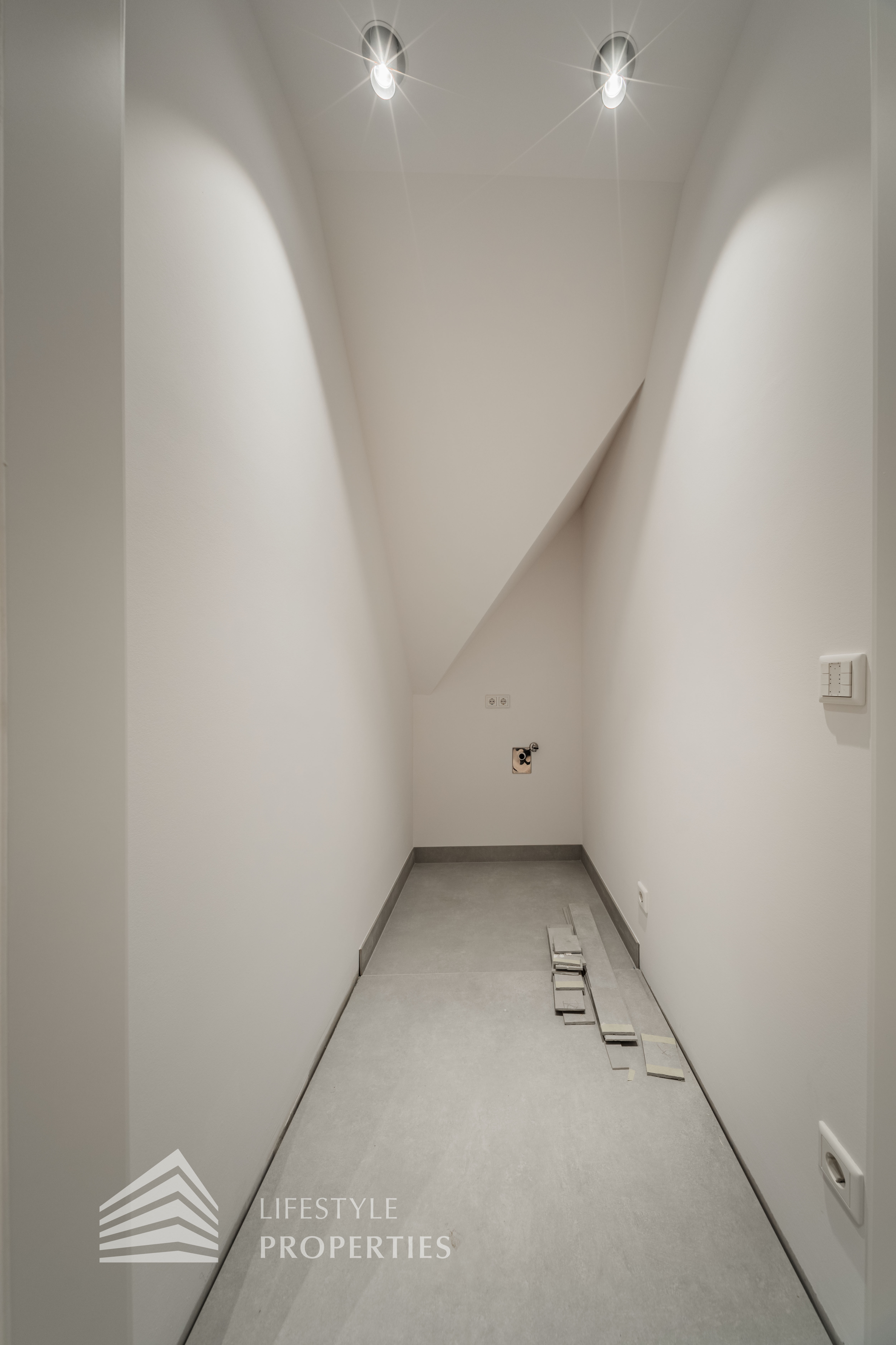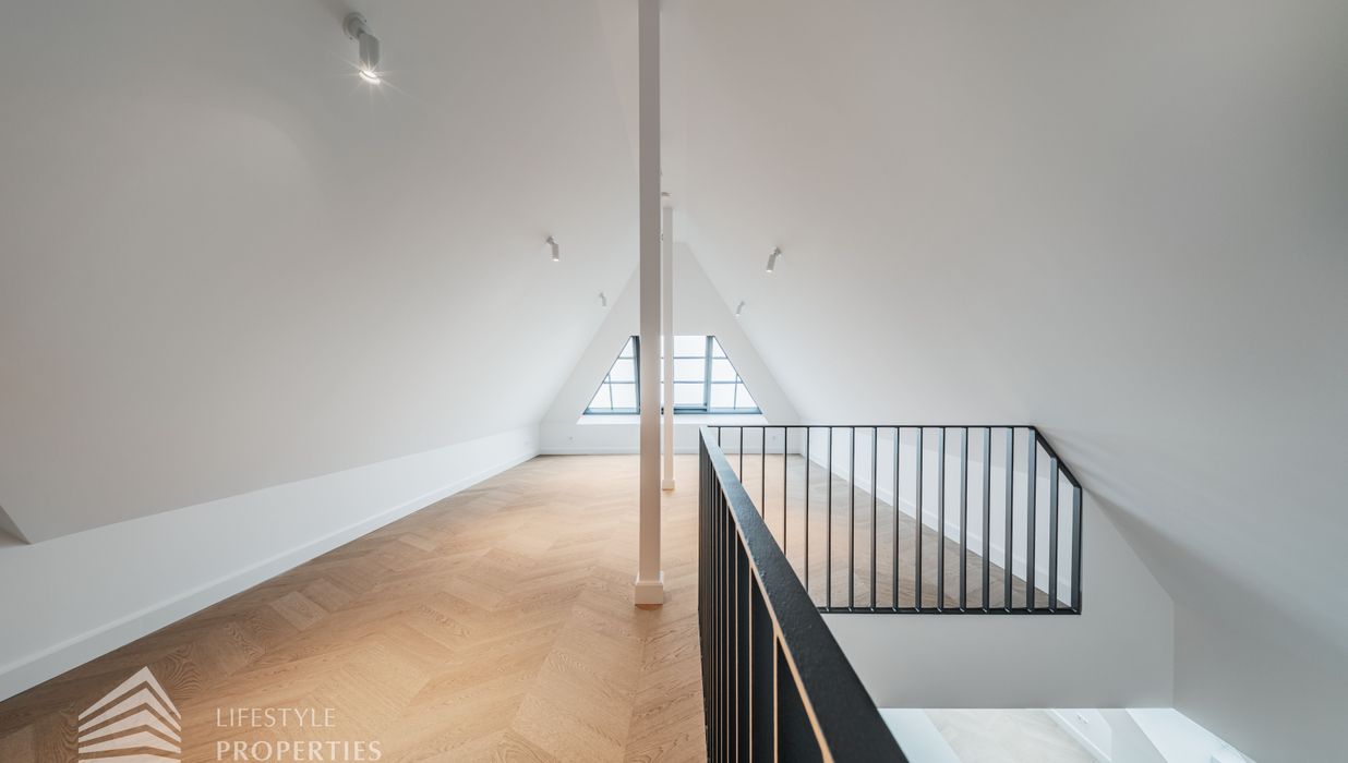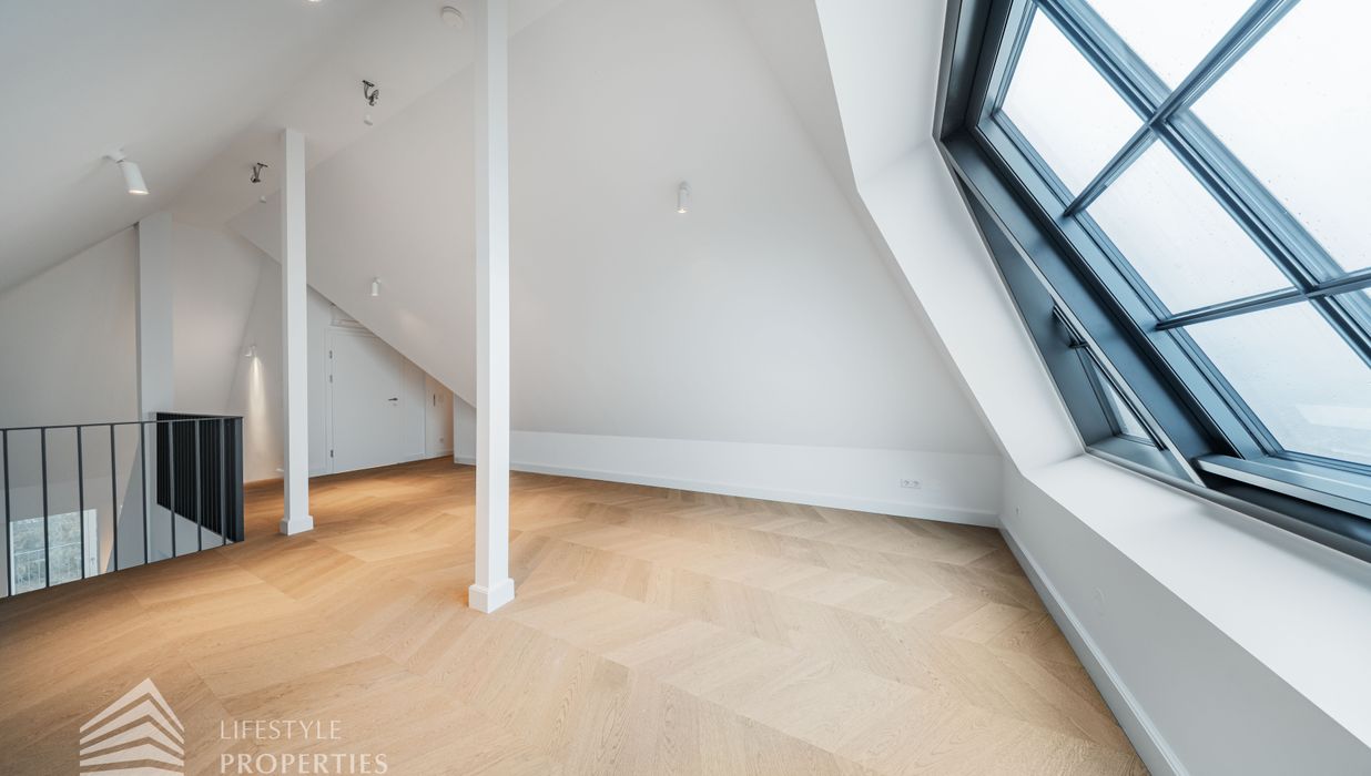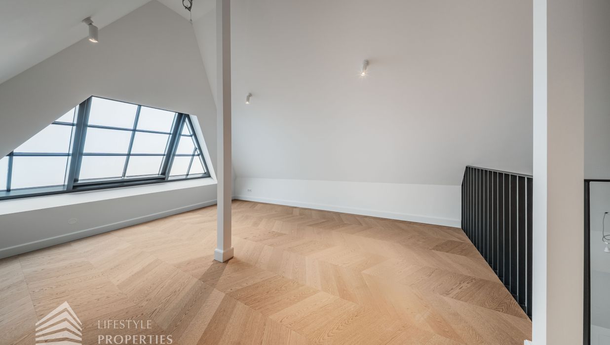 Über eine interne Treppe gelangt man in das Galeriegeschoss, das als zweite Wohnebene konzipiert ist und vielfältige Nutzungsmöglichkeiten eröffnet. Hier befindet sich ein großzügiger Wohnraum mit ca. 36 m², der sich ideal als zusätzlicher Aufenthaltsbereich, Bibliothek, Homeoffice oder Lounge eignet. Ergänzt wird diese Ebene durch ein separat begehbares Zimmer mit ca. 20 m², das flexibel als Schlaf-, Gäste- oder Arbeitszimmer genutzt werden kann, sowie durch ein Badezimmer mit ca. 5 m², das den Wohnkomfort auf dieser Ebene vollständig abrundet.