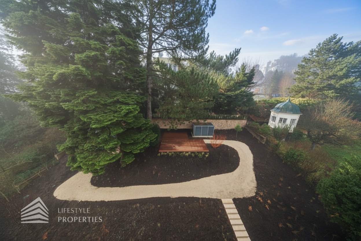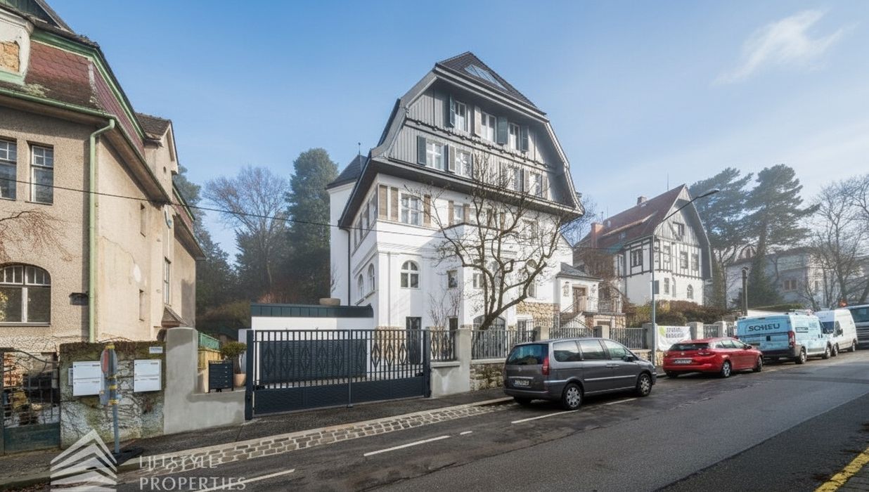 Die im Jahr 1912 errichtete Villa liegt auf einem rund 558 m² umfassenden Grundstück in einer ruhigen, repräsentativen Villenwohngegend mit eindrucksvollem Fernblick ins Grüne.