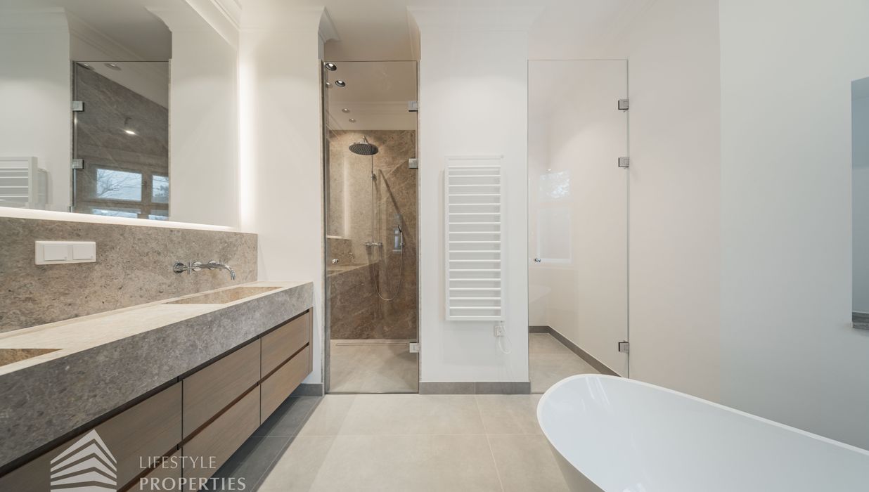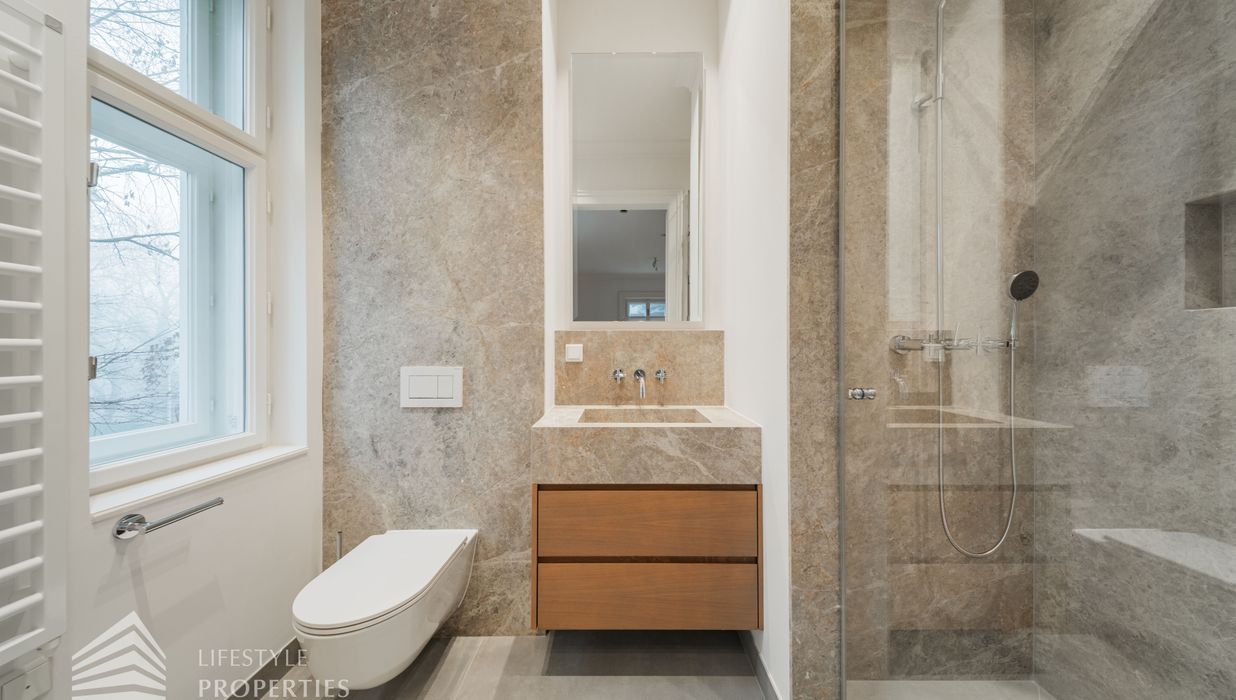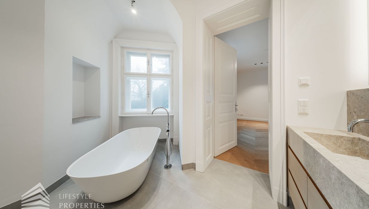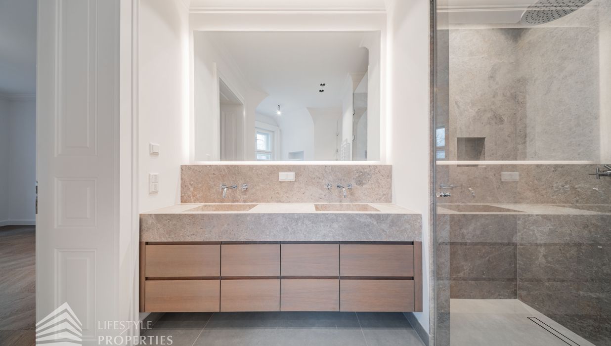 Die Wohnung wurde umfassend und mit höchstem Anspruch saniert. Edler Parkettboden in den Wohnräumen, hochwertiges Feinsteinzeug in den Nassbereichen sowie doppelte Fenster im klassischen Altbaustil unterstreichen den zeitlosen Charakter dieser Immobilie. Auf Wunsch kann ein Garagenstellplatz im Stapelparker angemietet werden und rundet das Angebot perfekt ab.
