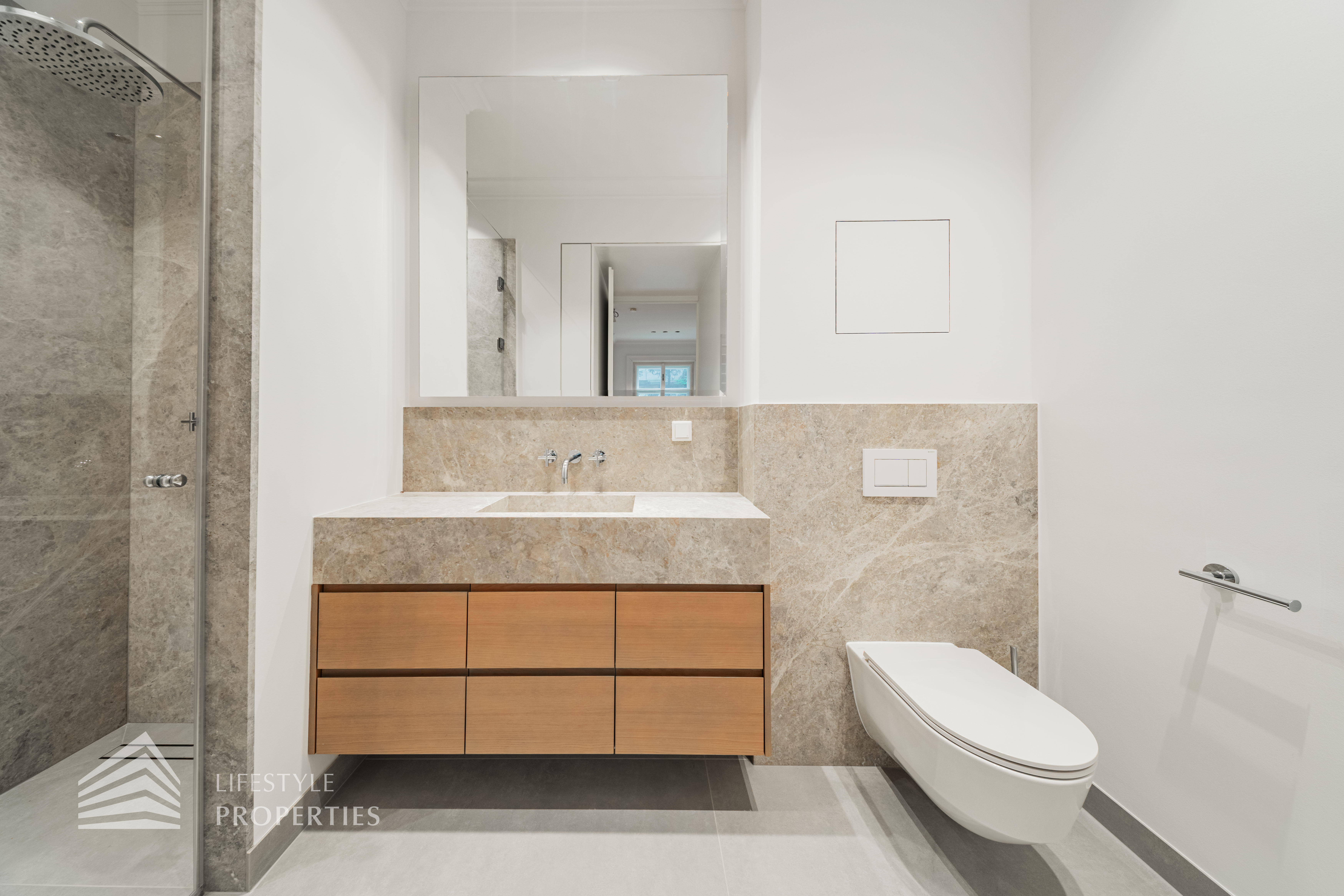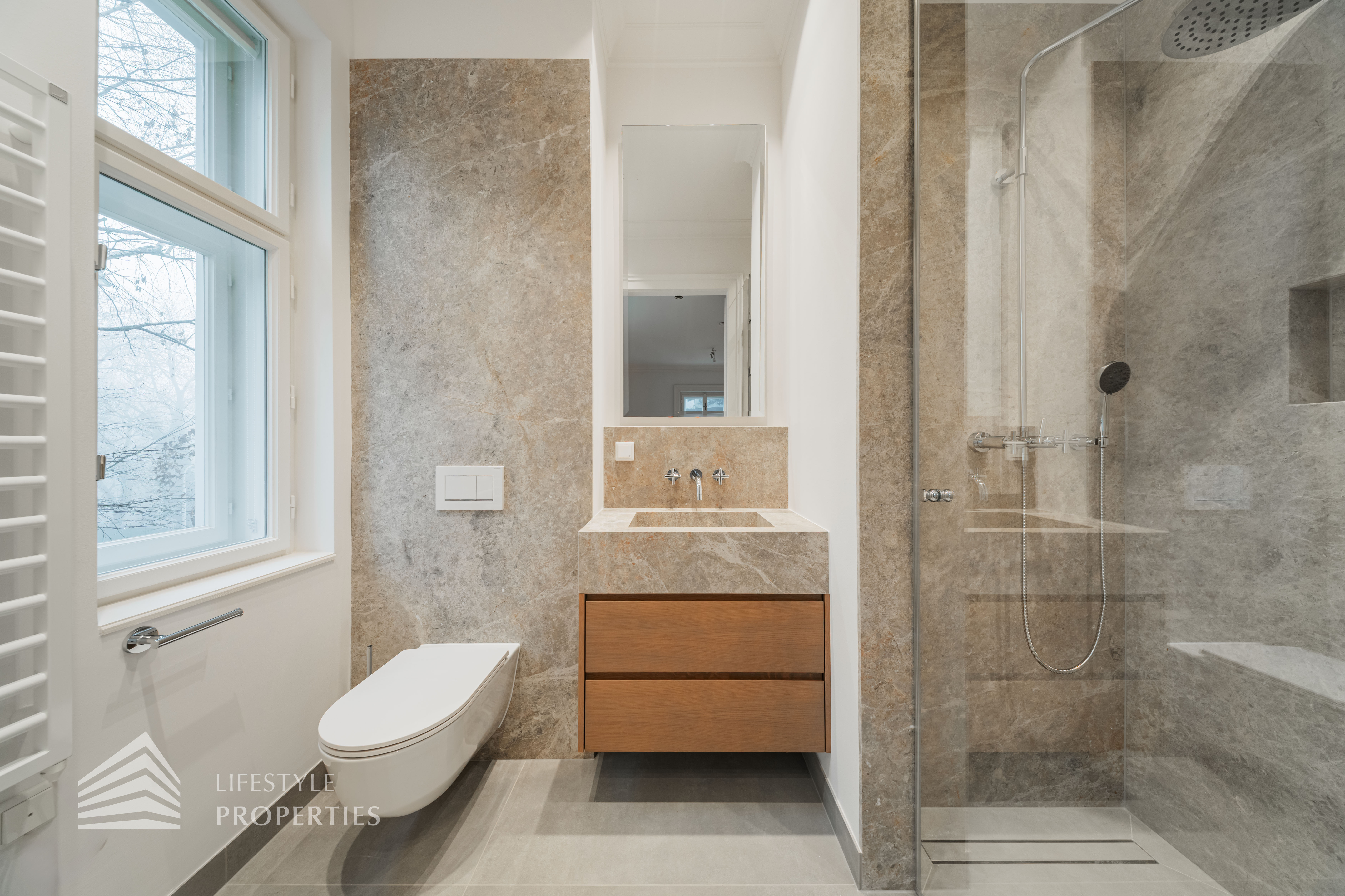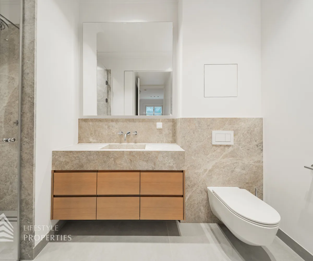 Die Wohnung wurde umfassend und mit höchstem Anspruch saniert. Edler Parkettboden in den Wohnräumen, hochwertiges Feinsteinzeug in den Nassbereichen sowie doppelte Fenster im klassischen Altbaustil unterstreichen den zeitlosen Charakter dieser Immobilie. Auf Wunsch kann ein Garagenstellplatz im Stapelparker angemietet werden und rundet das Angebot perfekt ab.