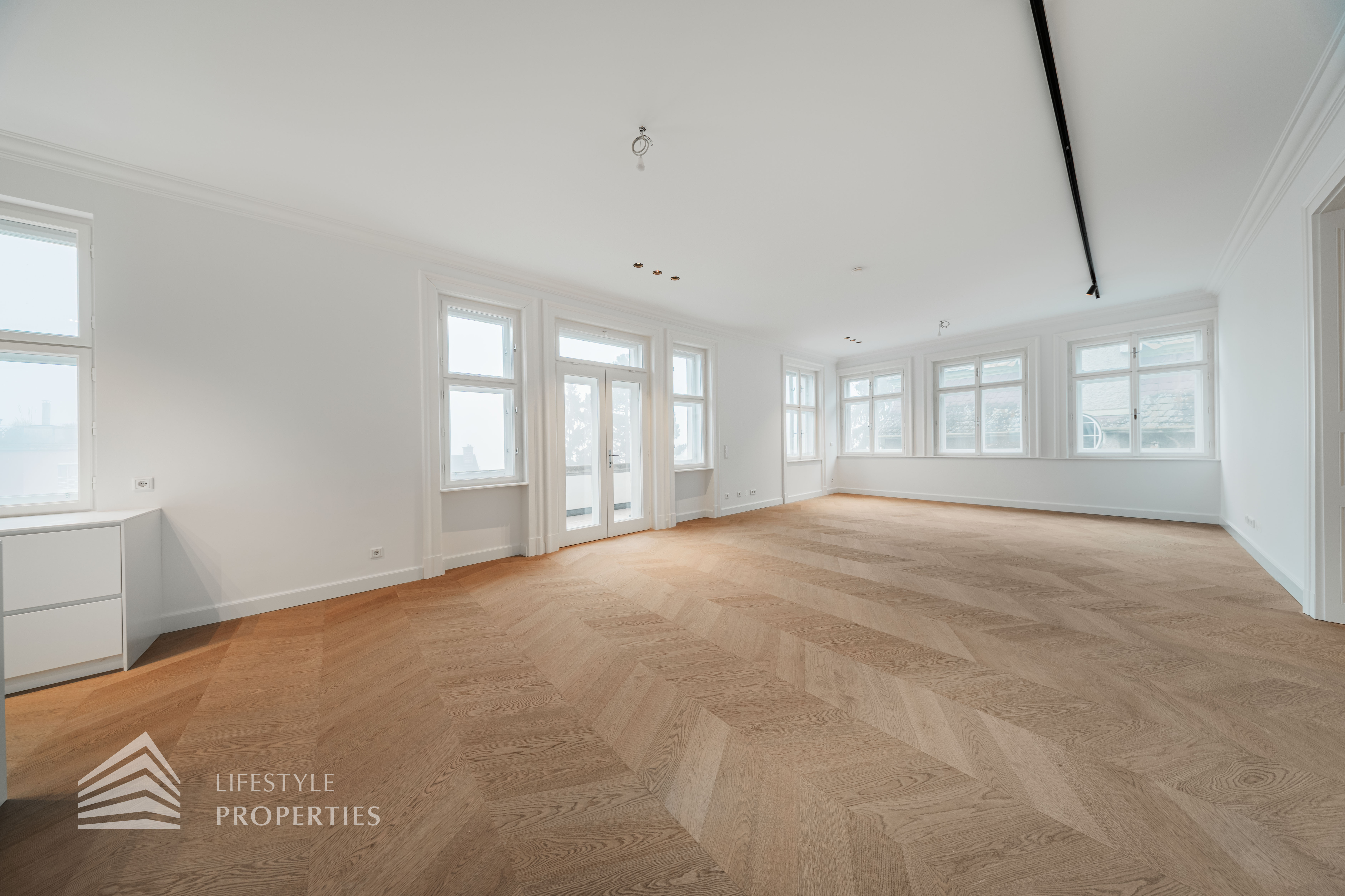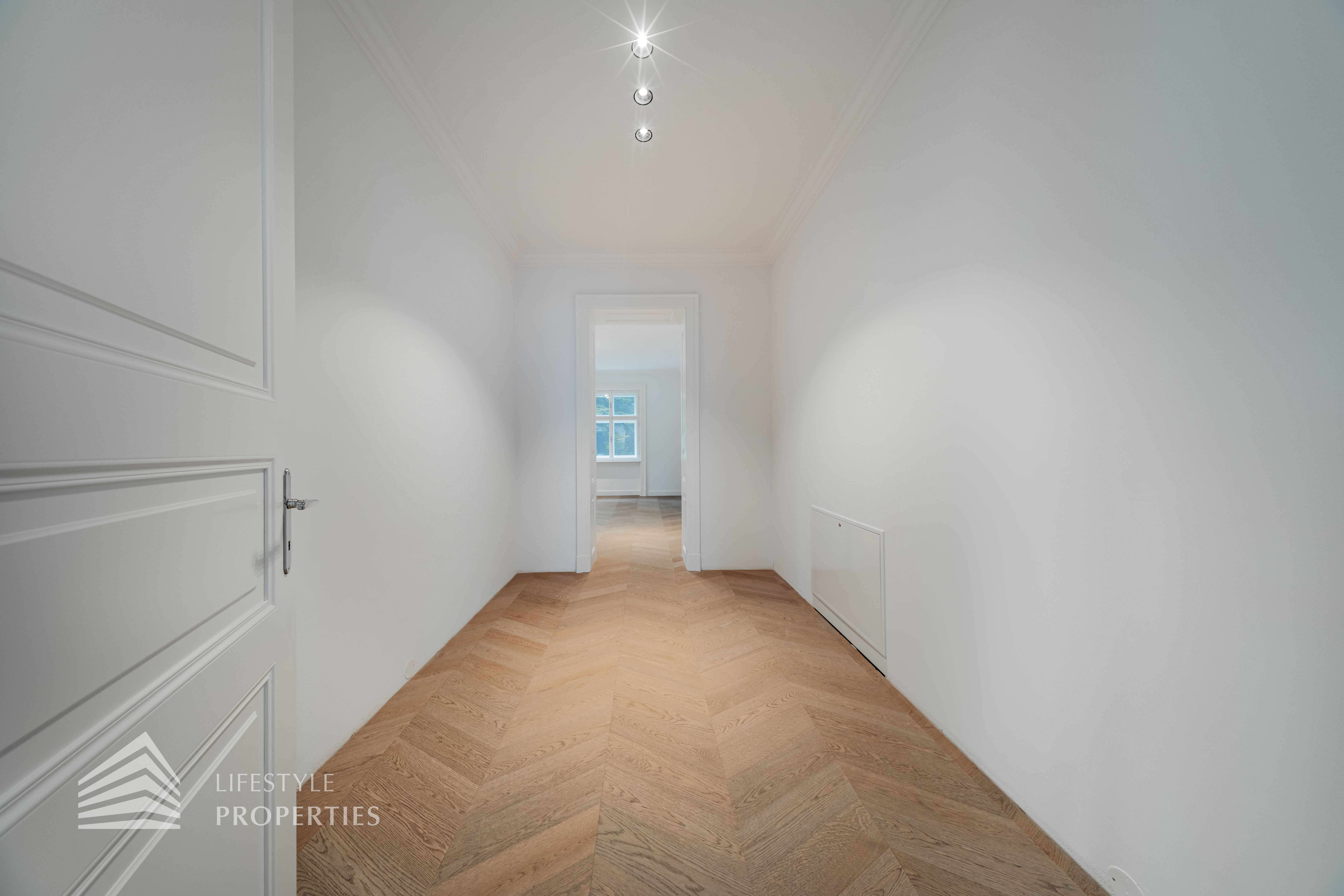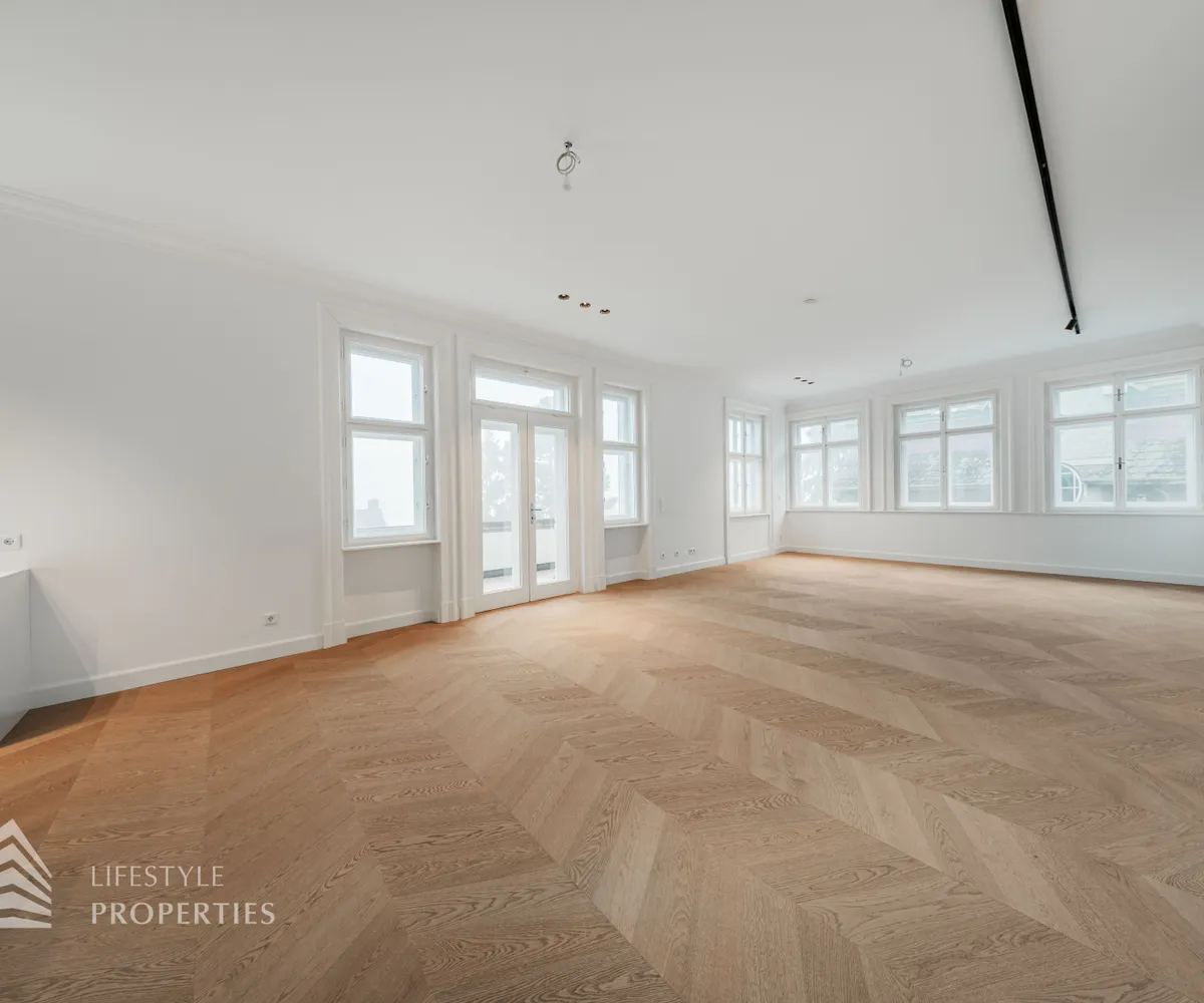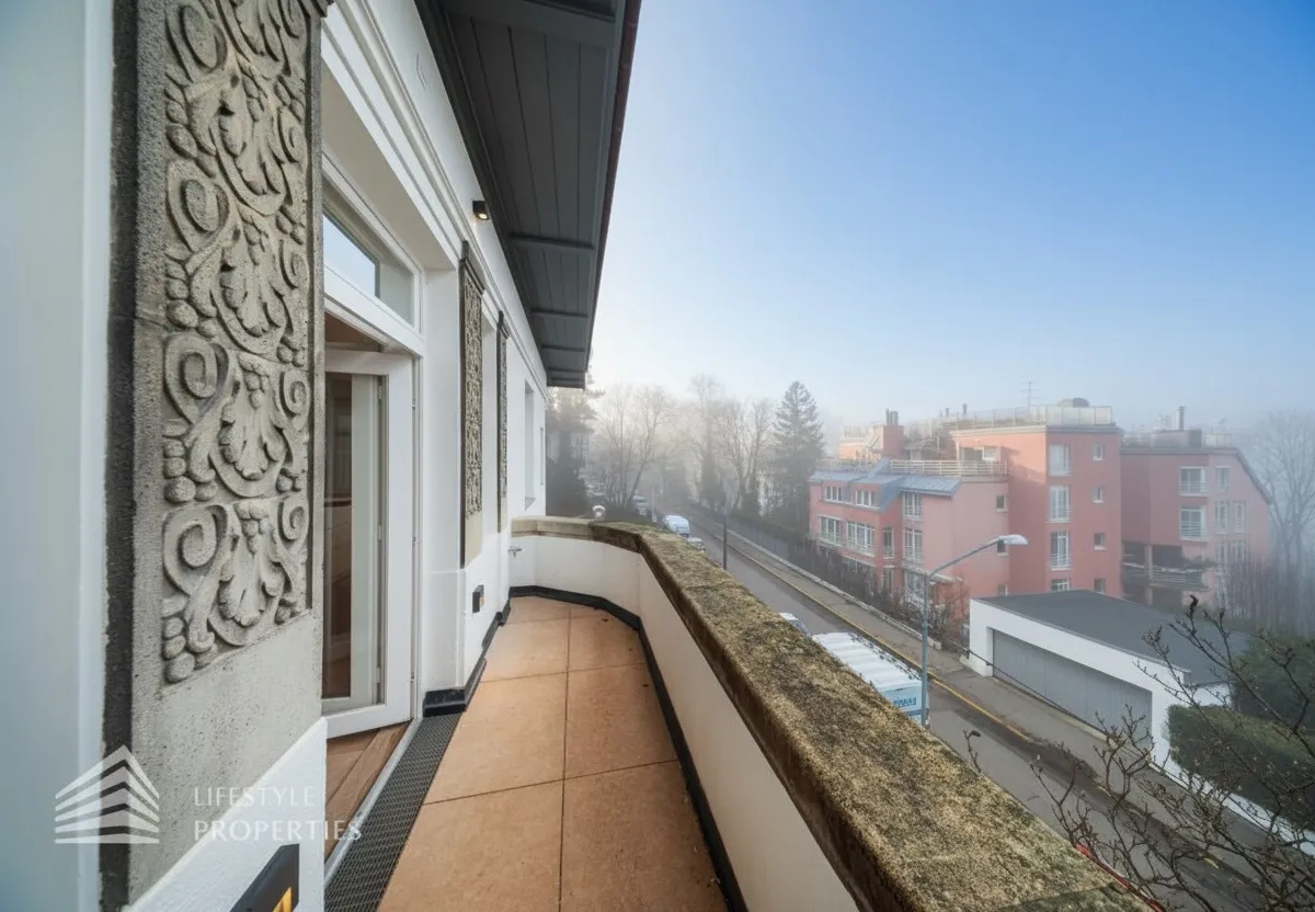 Ein separater Vorraum mit ca. 11 m² führt auf die gemütliche Loggia mit rund 8 m² und erschließt zudem ein Gäste-WC – ideal für Besucher und den repräsentativen Wohnalltag. Ergänzt wird das Raumangebot durch eine praktische Abstellkammer mit ca. 5 m².