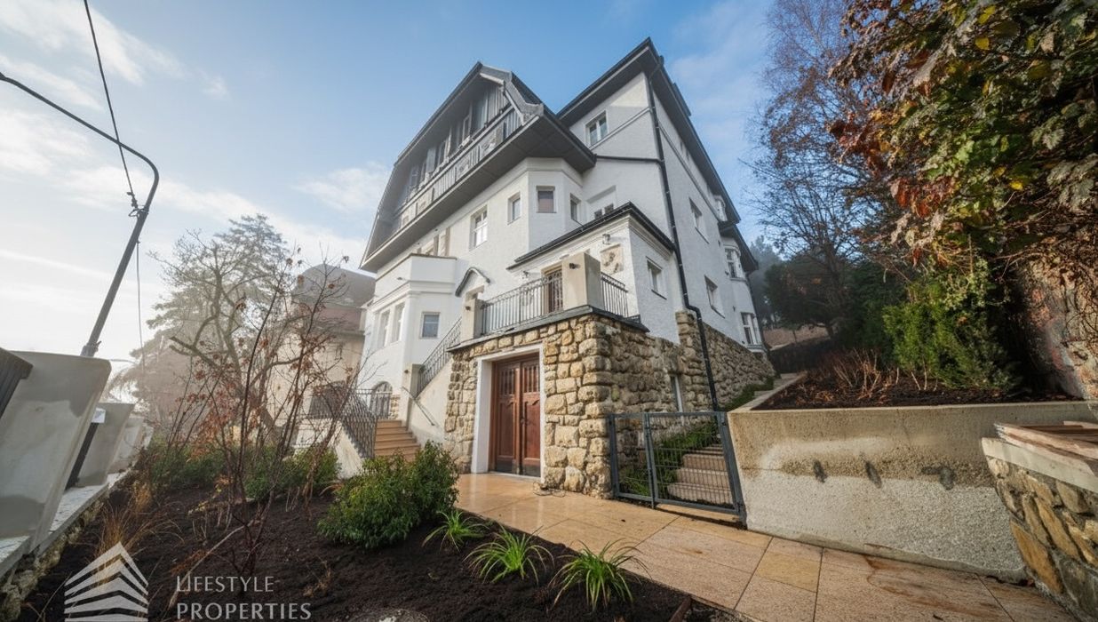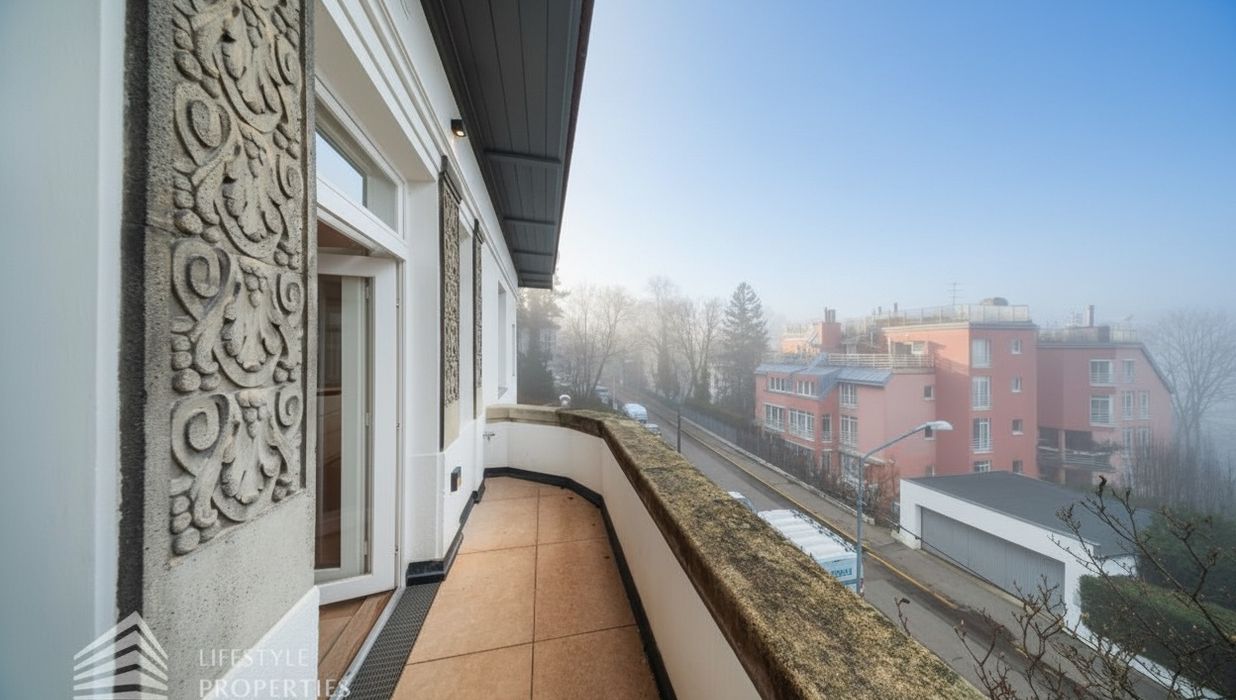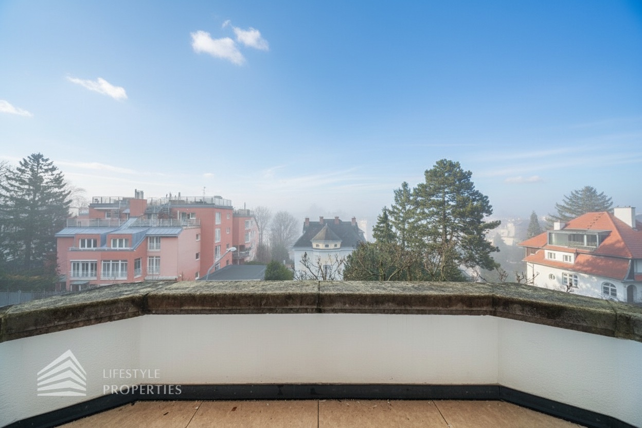 Die im Jahr 1912 errichtete Villa liegt auf einem rund 558 m² umfassenden Grundstück in einer ruhigen, repräsentativen Villenwohngegend mit eindrucksvollem Fernblick ins Grüne.