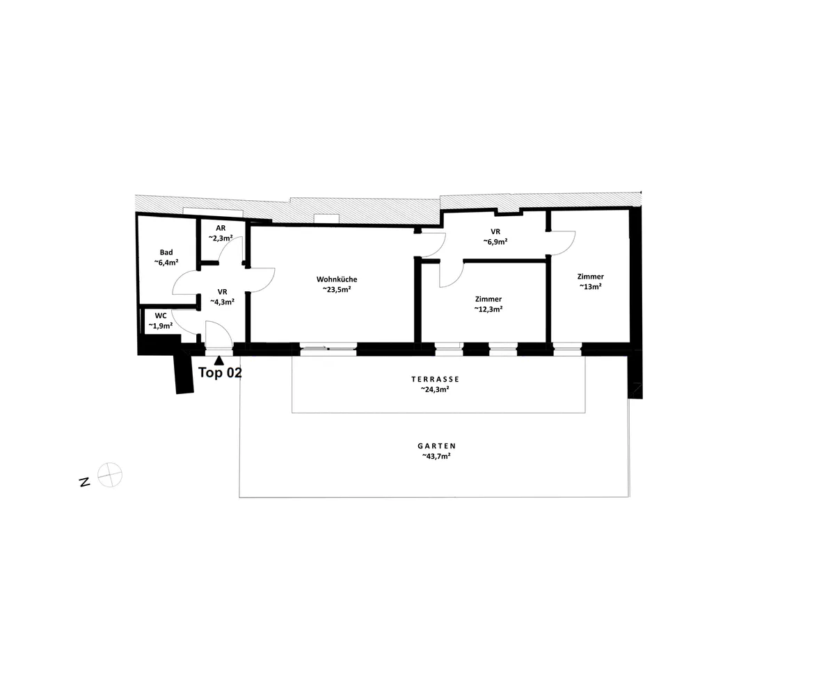 3 Zimmer | ca. 71 m² + ca. 44 m² Garten + ca. 24 m² Terrasse