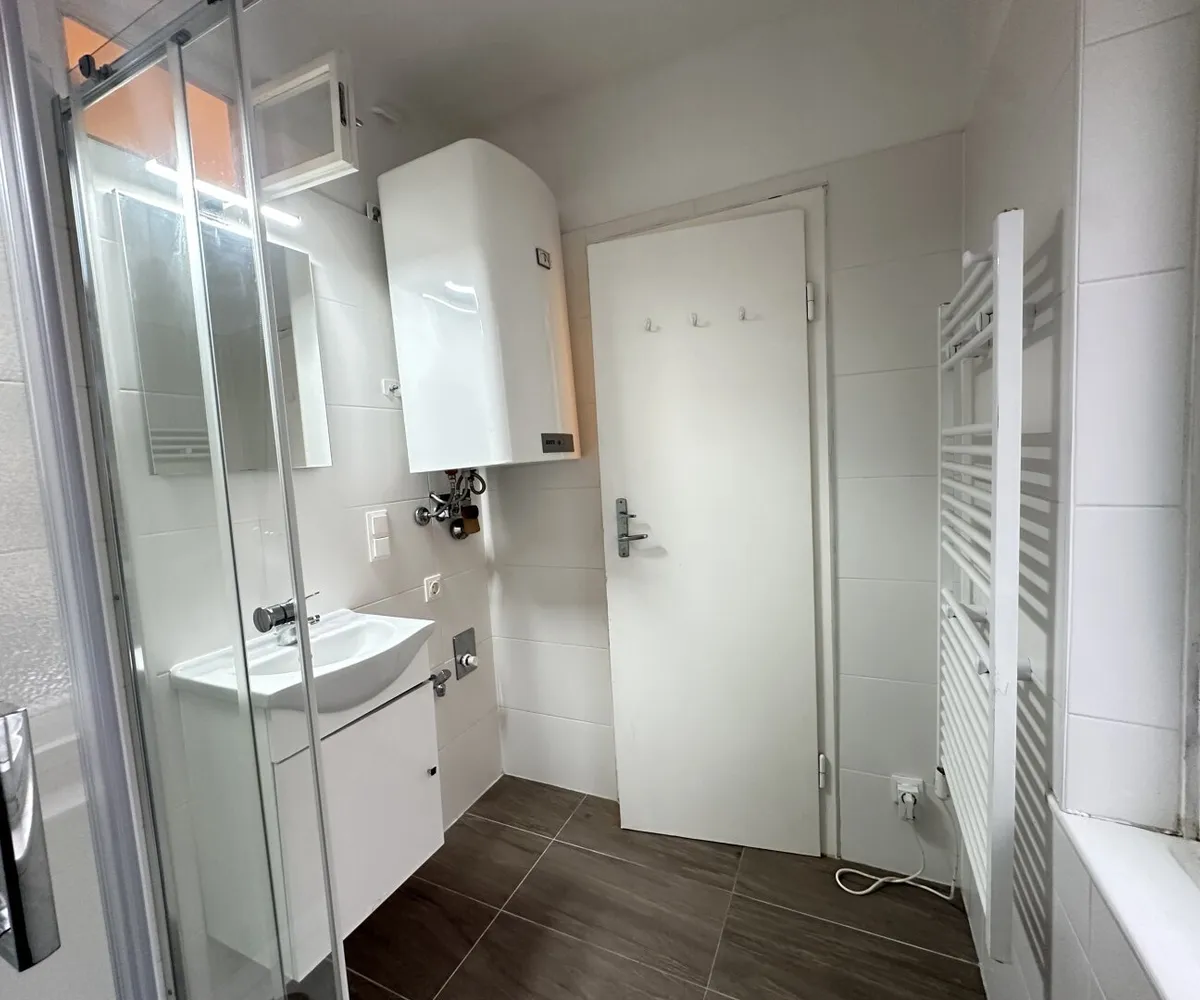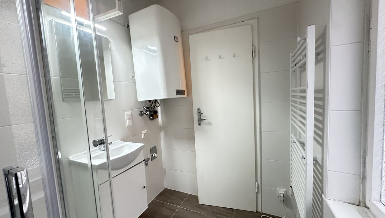Die top aufgeteilte Wohnung verfügt über ein Wohnzimmer mit Einbauküche und ein praktisches Schlafkabinett . Das neue Bad ist mit einer Dusche und einem Fenster ausgestattet, während das WC separat ist. Ein smarter Abstellraum bietet zusätzlichen Stauraum. Die Heizungsart basiert auf Infrarotpaneelen an der Decke, die sich mühelos über eine Fernbedienung steuern lassen.