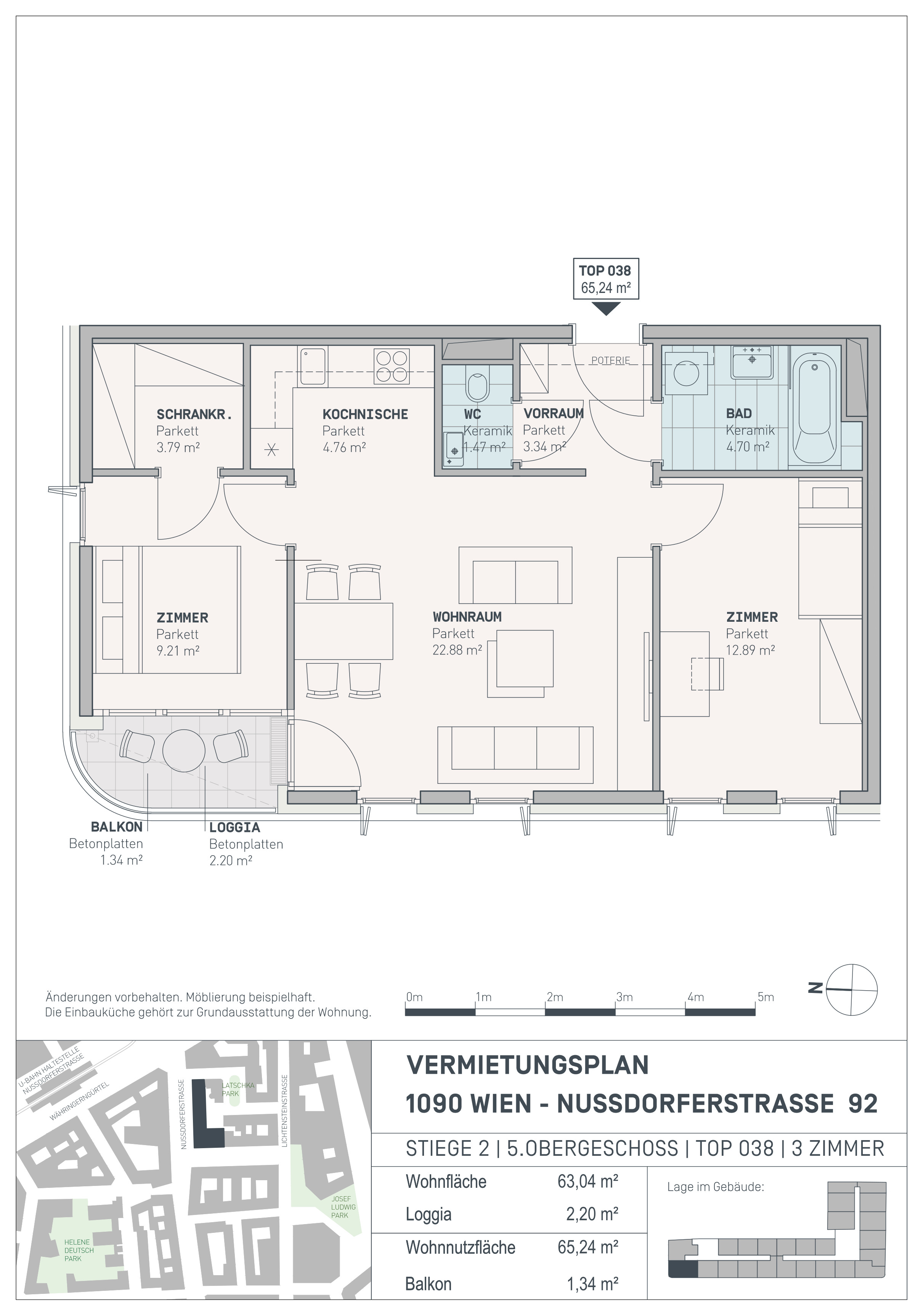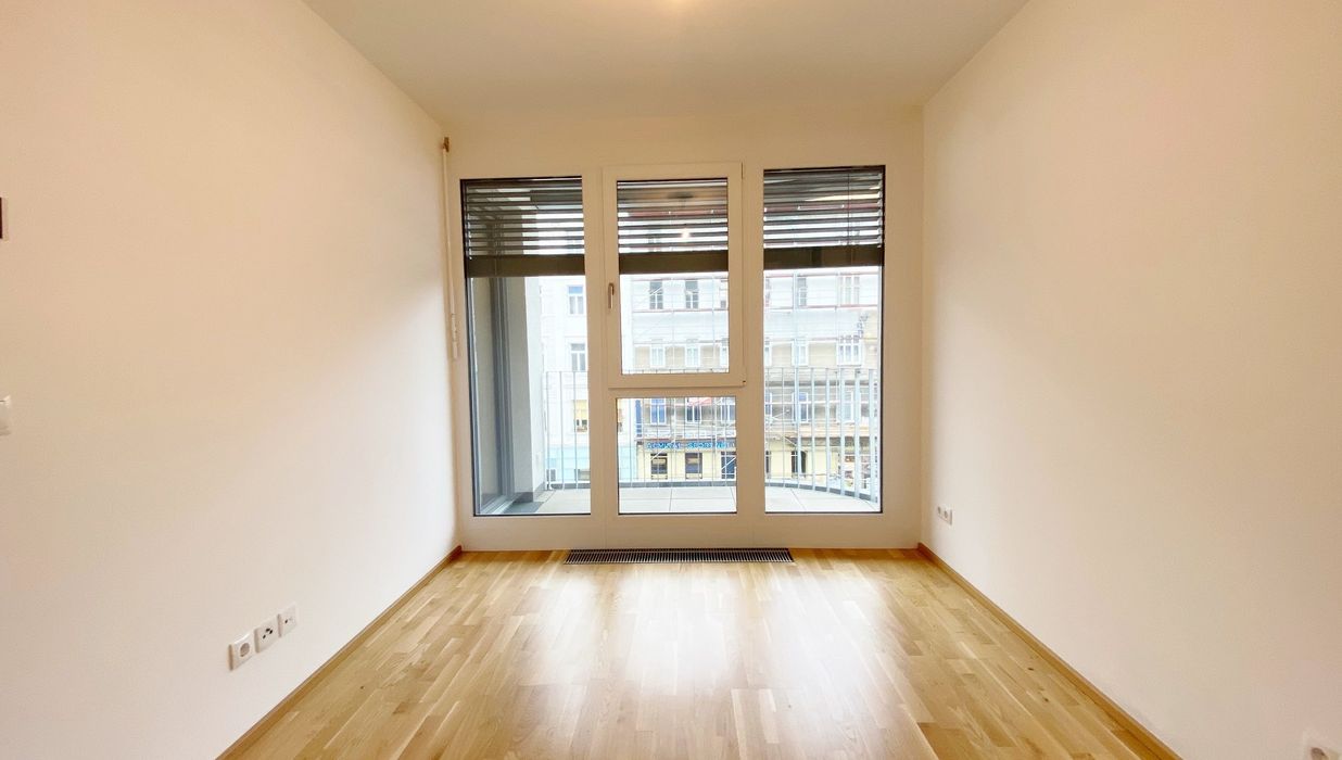 Die Wohnung befindet sich im 5. Obergeschoss und verfügt über eine helle Wohnküche, zwei Schlafzimmer eines davon mit angrenzendem Schrankraum, ein Badezimmer mit Wanne und Waschmaschinenanschluss, eine separate Toilette, einen Vorraum sowie über einen Balkon bzw. Loggia.