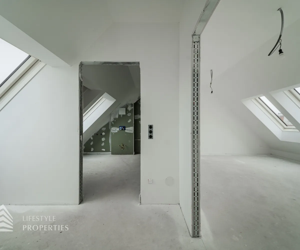 Die Wohnung verfügt über einen Vorraum, eine separate Toilette mit Handwaschbecken, ein modernes Badezimmer mit Doppelwaschbecken, Badewanne, Dusche und Toilette, einen Abstellraum mit Waschmaschinenanschluss, eine großzügige Wohnküche mit Anschlüssen für eine offene Küche sowie über drei Schlafzimmer. Zudem verfügt die Wohnung über zwei Balkone.