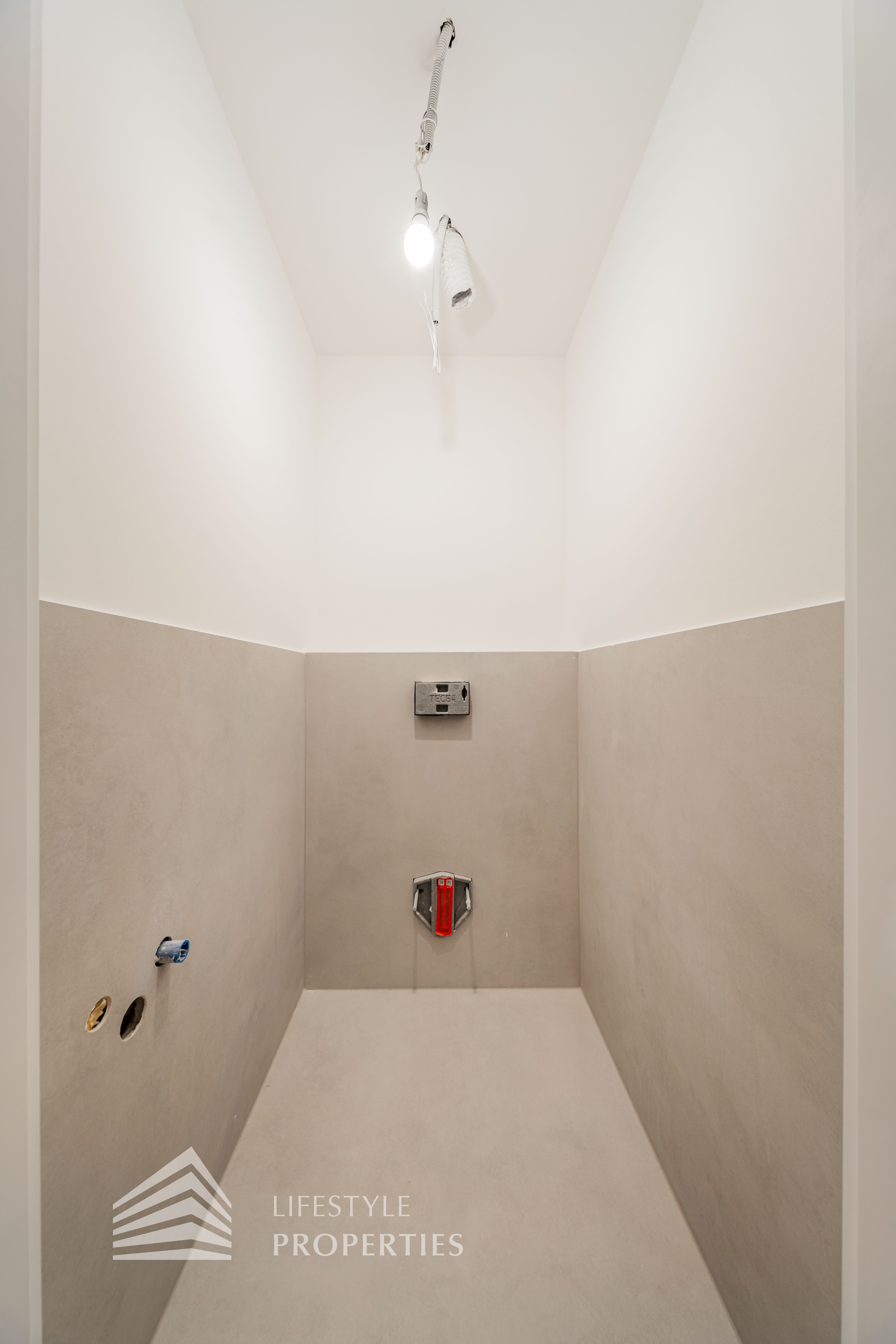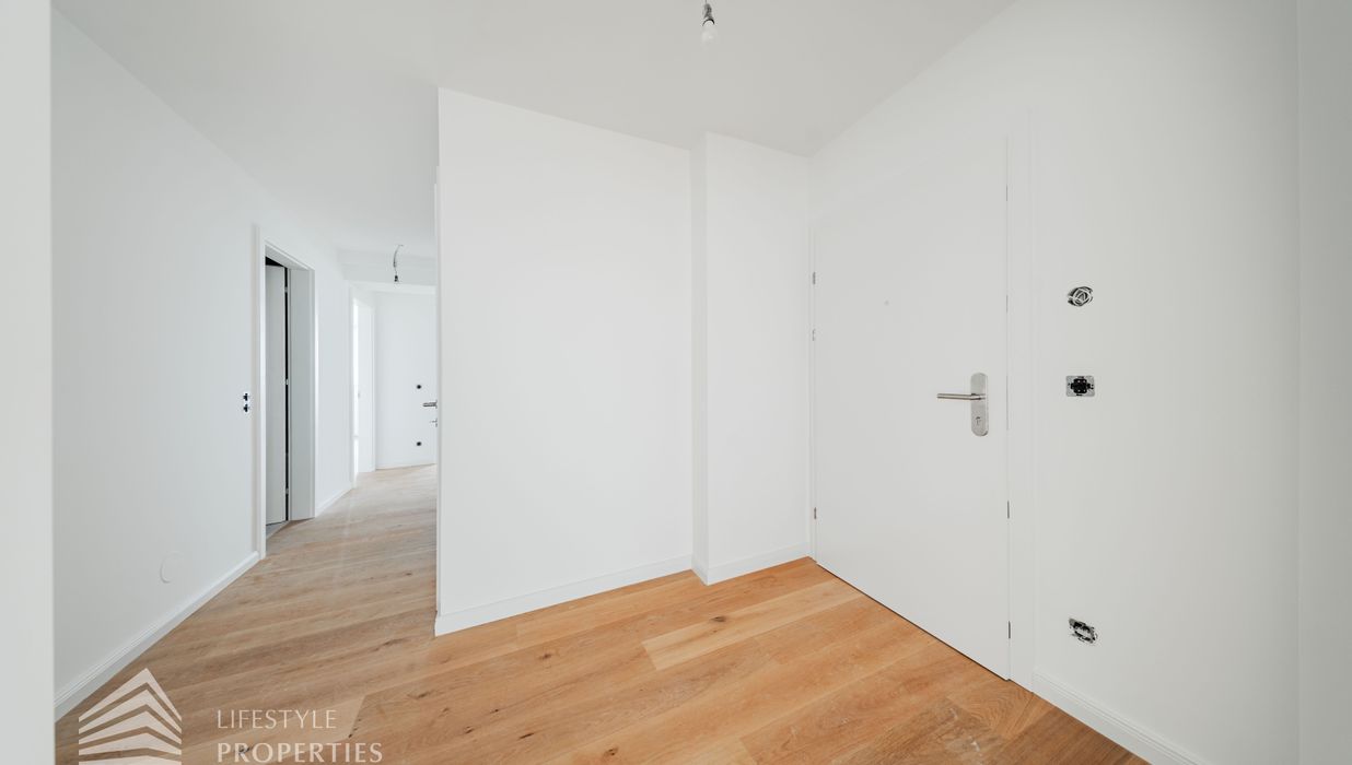Jede Wohnung verfügt über Freiflächen (Balkone, Terrassen bzw. Grünflächen). Alle Wohnräume sind mit hochwertigem Eichenparkett ausgestattet, während das Badezimmer mit zeitlos eleganten Fliesen versehen ist. In der gesamten Wohnung sorgt eine Fußbodenheizung für angenehmen Komfort. Zusätzlichen Stauraum bietet ein großzügiges Kellerabteil. Im Haus stehen zudem ein Kinderwagen- sowie ein Fahrradabstellraum zur Verfügung. Weiters gibt es eine Garage mit 7 KFZ-Stellplätzen.