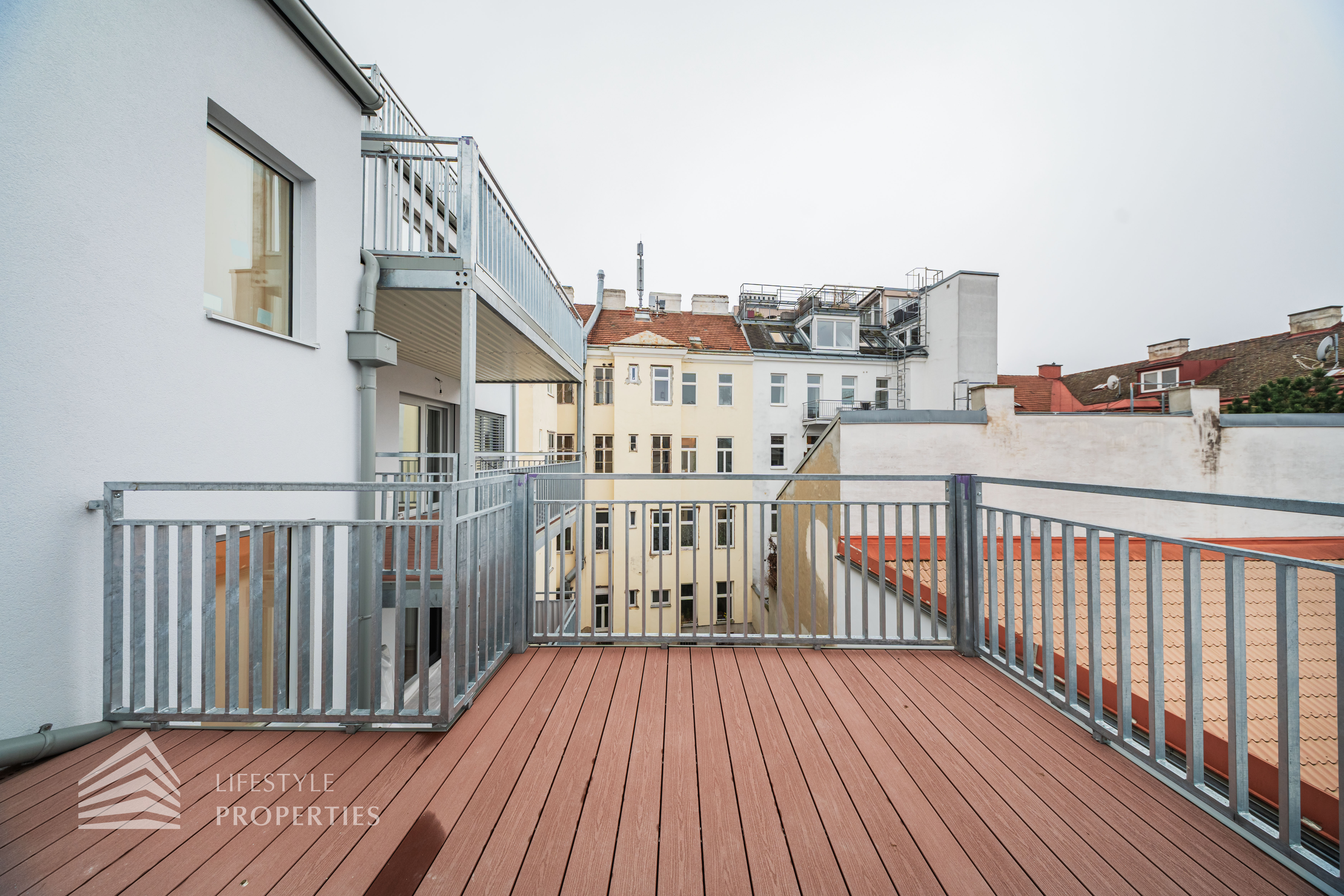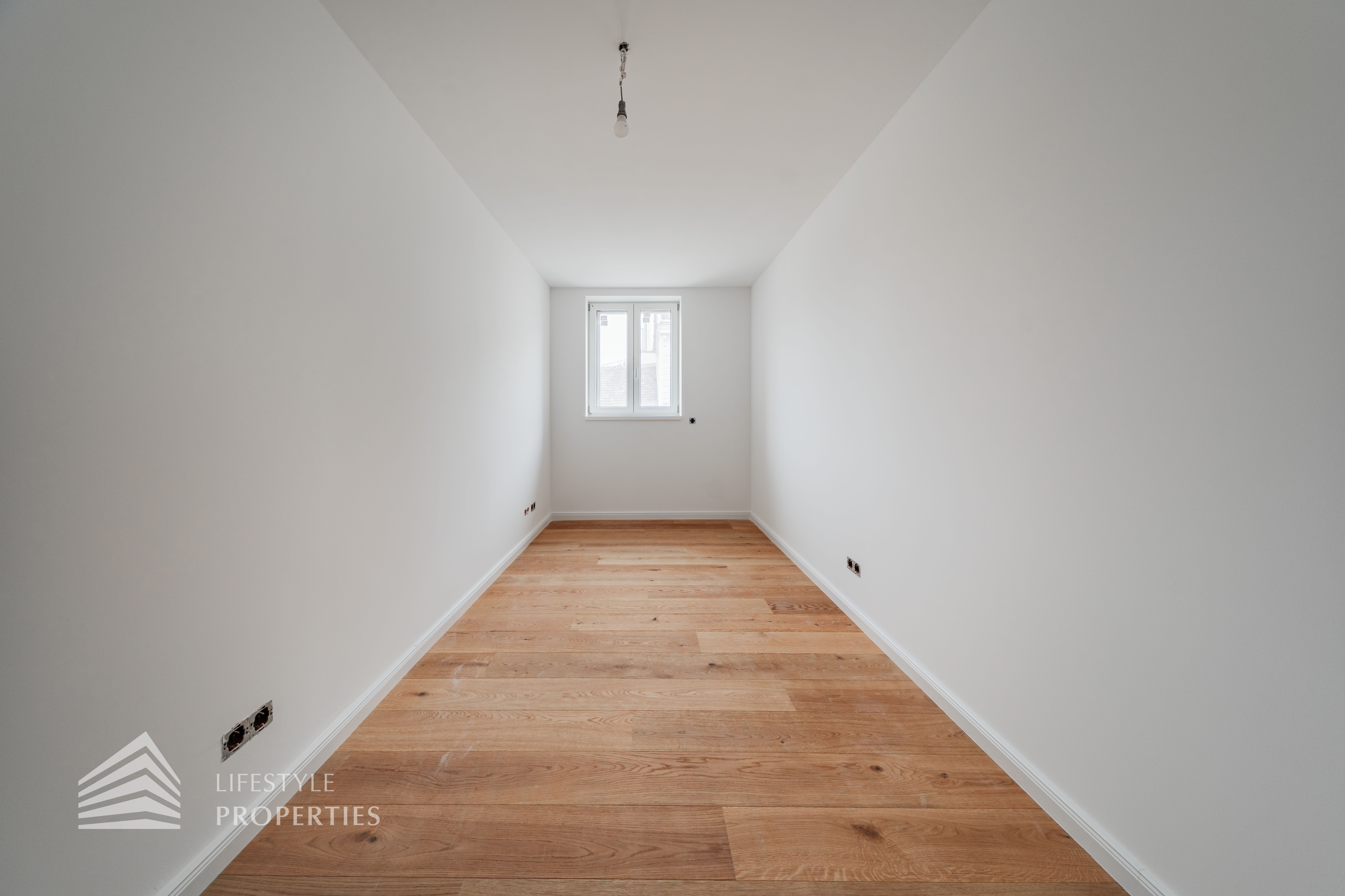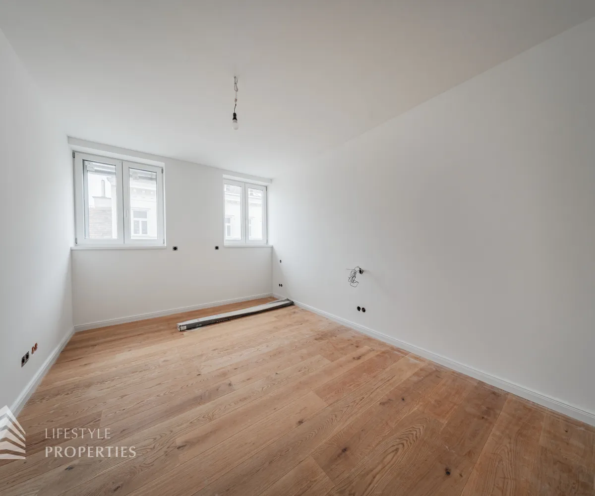 Diese helle 4-Zimmer Wohnung mit ca. 103 m² befindet sich im 3. Liftstock, eines charmanten modernisierten Gründerzeithauses, in welchem 9 Wohnungen mit Wohnflächen zwischen 95 m² und 130 m² mit hochwertiger Ausstattung zum Verkauf gelangen. Die Wohnfläche gliedert sich in einen Vorraum, eine Wohnküche, drei Zimmer, ein Badezimmer, einen Abstellraum und eine separate Toilette. Zusätzlich dazu bietet Ihnen das Objekt einen ca. 10 m² großen Balkon. Alle Wohnräume sind mit hochwertigem Eichenparkett ausgestattet, während das Badezimmer mit zeitlos eleganten Fliesen versehen ist. In der gesamten Wohnung sorgt eine Fußbodenheizung für angenehmen Komfort.