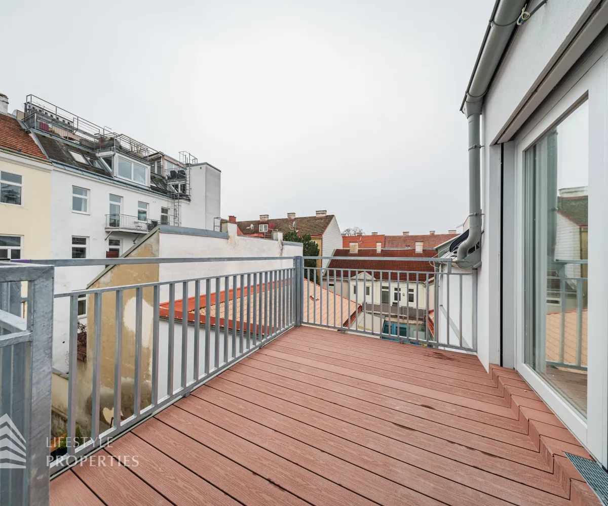 Diese helle 4-Zimmer Wohnung mit ca. 103 m² befindet sich im 3. Liftstock, eines charmanten modernisierten Gründerzeithauses, in welchem 9 Wohnungen mit Wohnflächen zwischen 95 m² und 130 m² mit hochwertiger Ausstattung zum Verkauf gelangen. Die Wohnfläche gliedert sich in einen Vorraum, eine Wohnküche, drei Zimmer, ein Badezimmer, einen Abstellraum und eine separate Toilette. Zusätzlich dazu bietet Ihnen das Objekt einen ca. 10 m² großen Balkon. Alle Wohnräume sind mit hochwertigem Eichenparkett ausgestattet, während das Badezimmer mit zeitlos eleganten Fliesen versehen ist. In der gesamten Wohnung sorgt eine Fußbodenheizung für angenehmen Komfort.