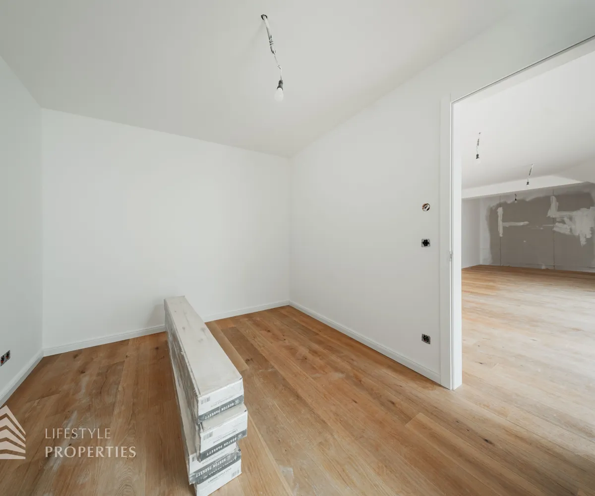Jede Wohnung verfügt über Freiflächen (Balkone, Terrassen bzw. Grünflächen). Alle Wohnräume sind mit hochwertigem Eichenparkett ausgestattet, während das Badezimmer mit zeitlos eleganten Fliesen versehen ist. In der gesamten Wohnung sorgt eine Fußbodenheizung für angenehmen Komfort. Zusätzlichen Stauraum bietet ein großzügiges Kellerabteil. Im Haus stehen zudem ein Kinderwagen- sowie ein Fahrradabstellraum zur Verfügung. Weiters gibt es eine Garage mit 7 KFZ-Stellplätzen.