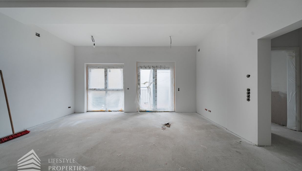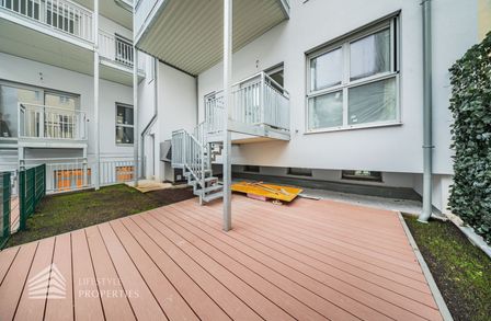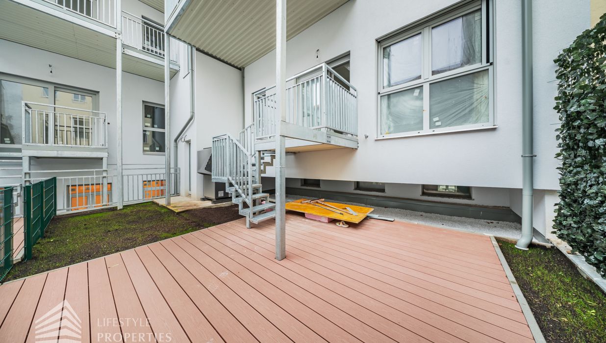 Jede Wohnung verfügt über Freiflächen (Balkone, Terrassen bzw. Grünflächen). Alle Wohnräume sind mit hochwertigem Eichenparkett ausgestattet, während das Badezimmer mit zeitlos eleganten Fliesen versehen ist. In der gesamten Wohnung sorgt eine Fußbodenheizung für angenehmen Komfort. Zusätzlichen Stauraum bietet ein großzügiges Kellerabteil. Im Haus stehen zudem ein Kinderwagen- sowie ein Fahrradabstellraum zur Verfügung. Weiters gibt es eine Garage mit 7 KFZ-Stellplätzen.