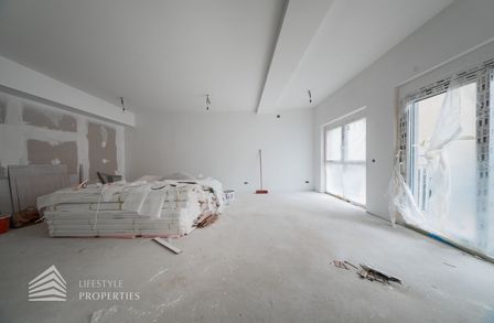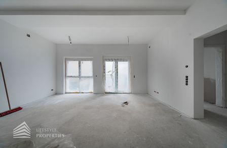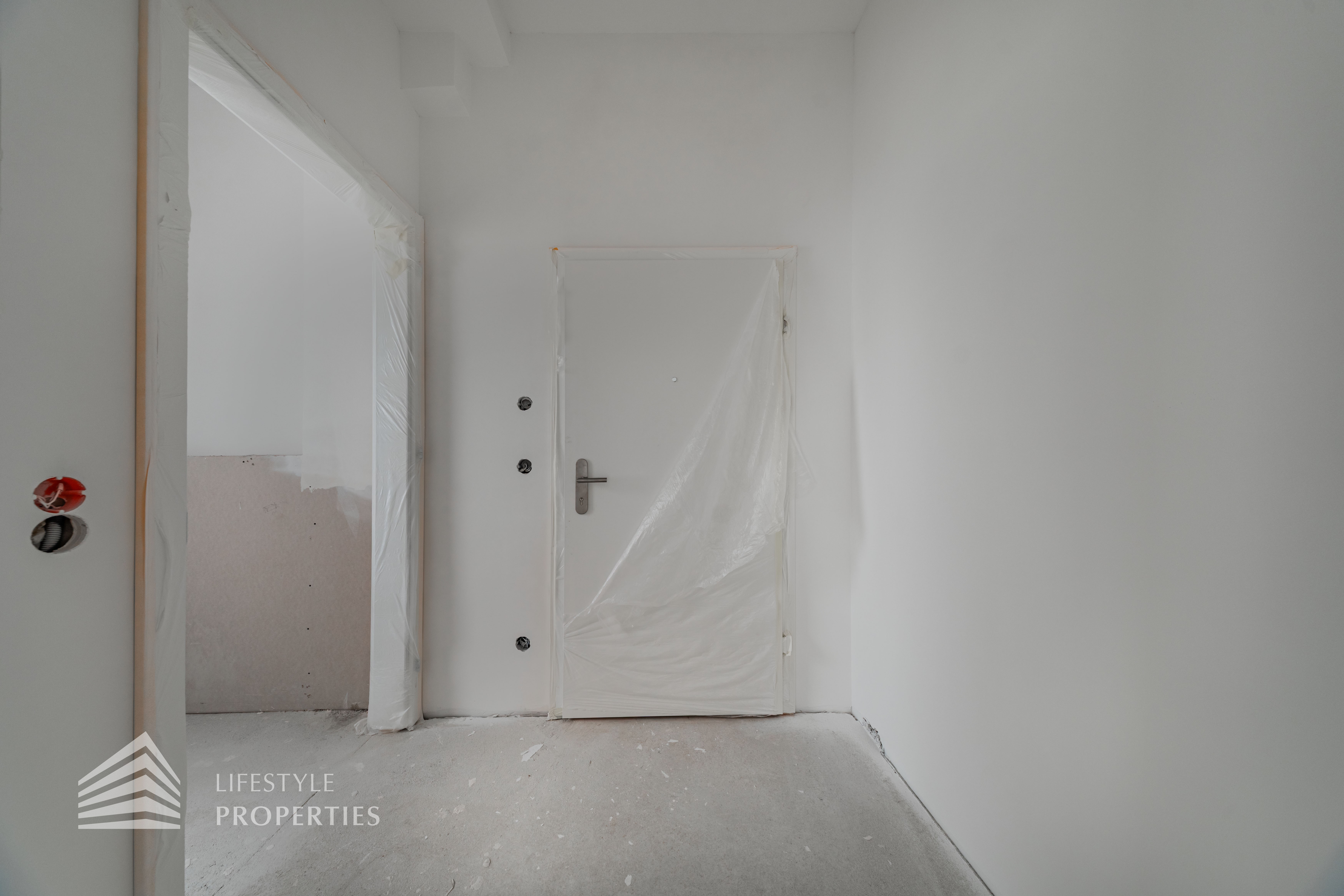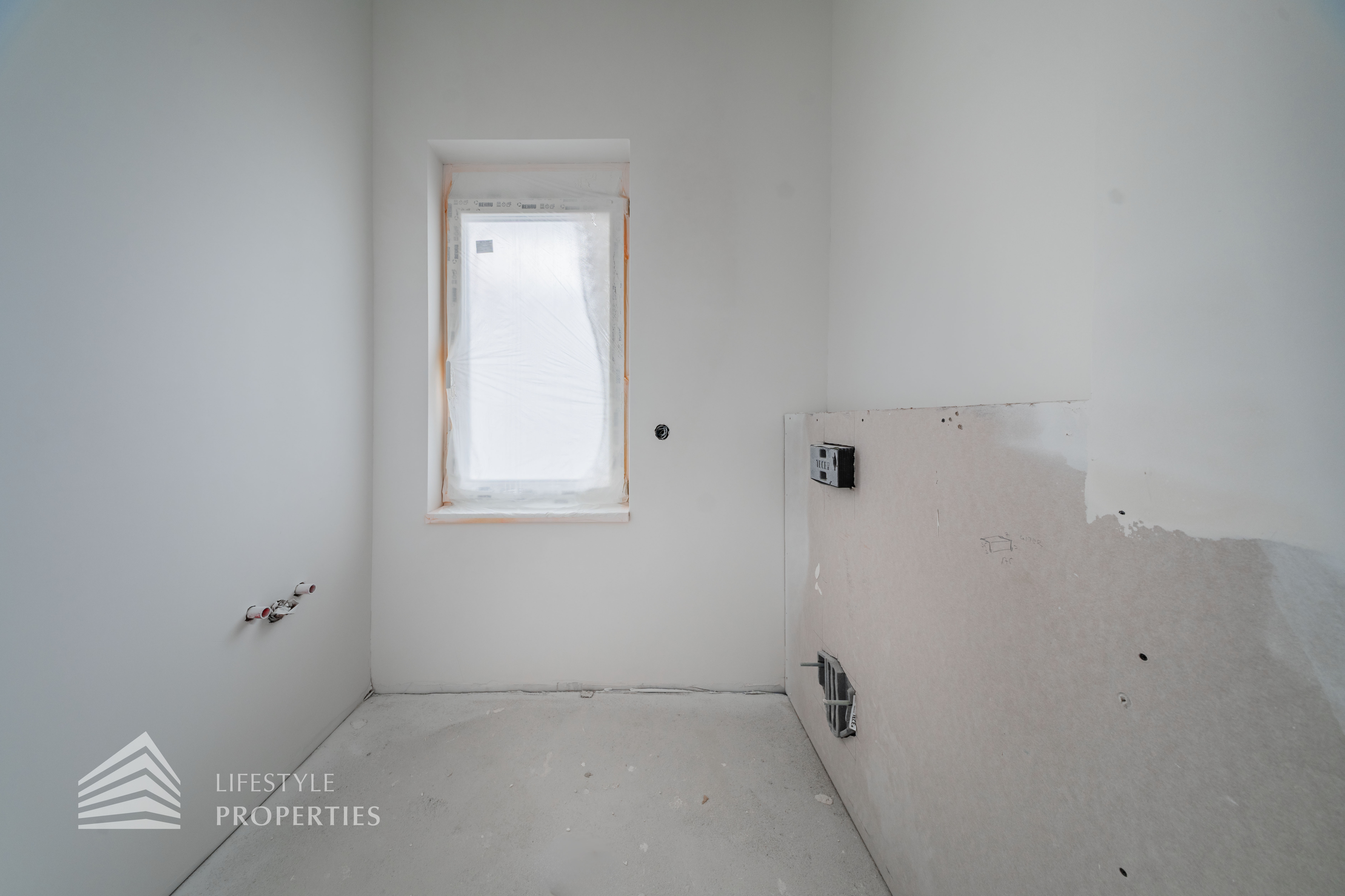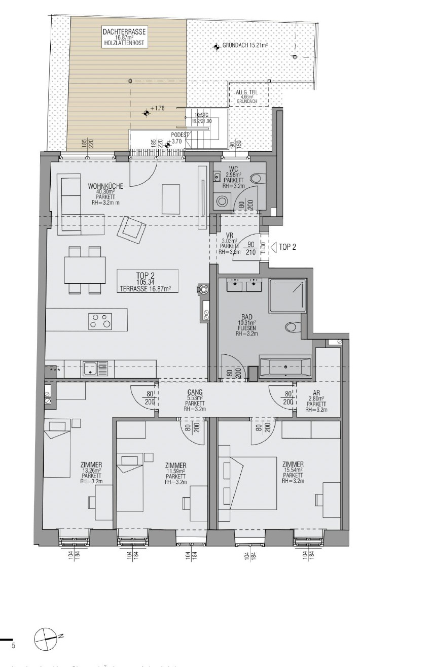 Sie betreten die Wohnung und befinden sich im Vorraum. Dieser führt Sie direkt in eine großzügige Wohnküche mit Anschlüssen für eine offene Küche und es gibt Zugang zu der schönen Terrasse. Über die Wohnküche gelangen Sie zu einem Gang, welcher die 3 Schlafzimmer miteinander verbindet und Zugang zum praktischen Abstellraum bietet. Das Badezimmer mit Dusche, WC und Doppelwaschbecken sowie mit Waschmaschinenanschluss und ein separates WC befinden sich im Vorraum.