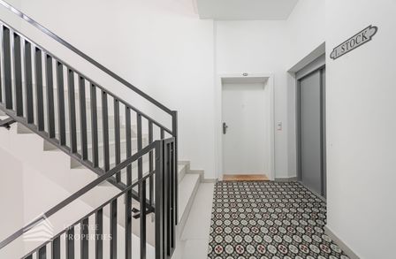 Jede Wohnung des Hauses verfügt über Freiflächen (Balkone, Terrassen bzw. Grünflächen). Alle Wohnräume sind mit hochwertigem Eichenparkett ausgestattet, während das Badezimmer mit zeitlos eleganten Fliesen versehen ist. In der gesamten Wohnung sorgt eine Fußbodenheizung für angenehmen Komfort. Zusätzlichen Stauraum bietet ein großzügiges Kellerabteil. Im Haus stehen zudem ein Kinderwagen- sowie ein Fahrradabstellraum zur Verfügung. Weiters gibt es eine Garage mit 7 KFZ-Stellplätzen.