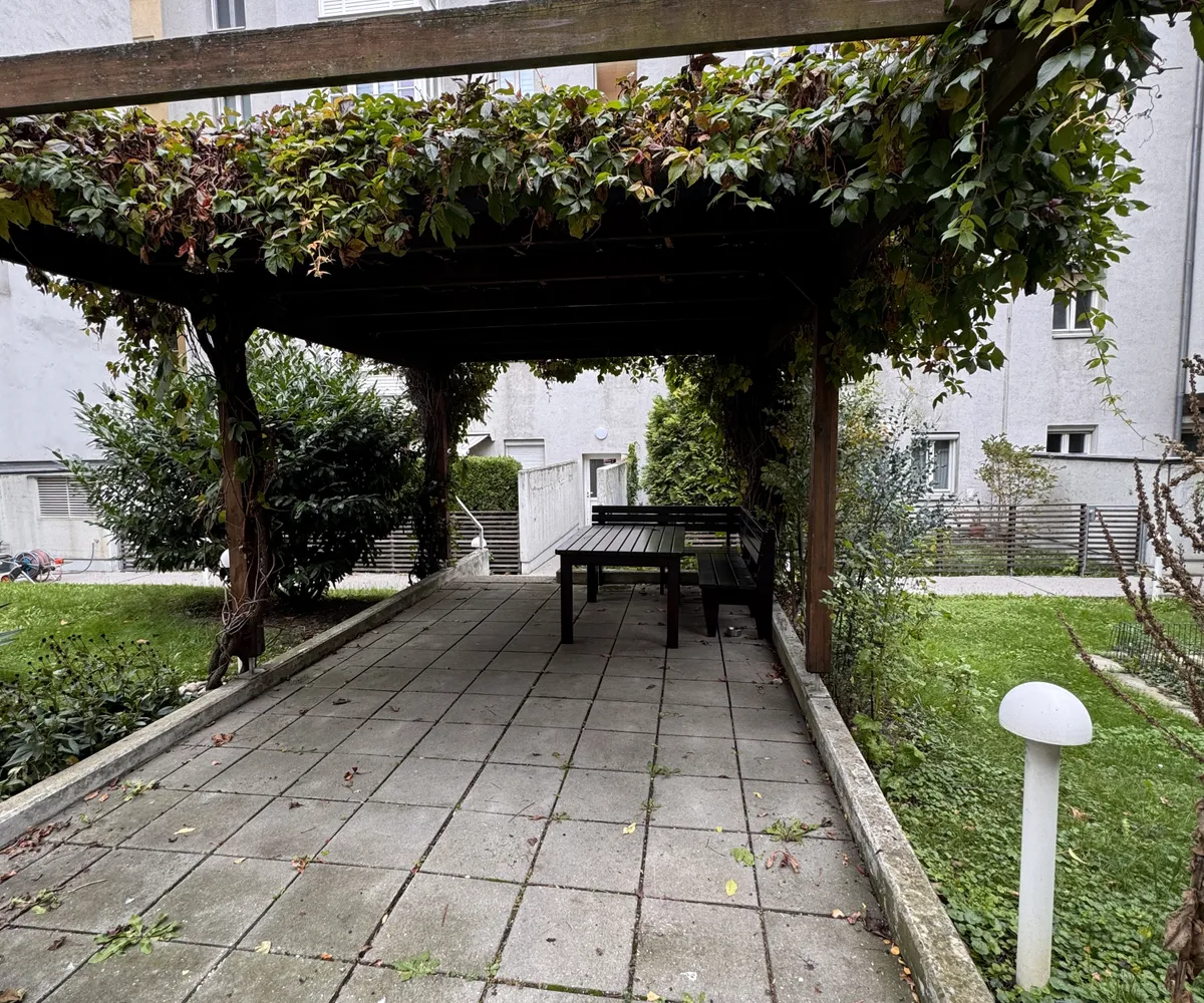 Für die Bewohner des Hauses steht ein Gemeinschaftsgarten zur Verfügung, wo die Bewohner Sitzgelegenheiten in der Sonne oder im Schatten (Laube) vorfinden. Für kleine Kinder in der Anlage ist eine Sandkiste vorhanden. Um die Pflege der Gemeinschaftsanlagen kümmert sich eine Hausbetreuungsfirma.