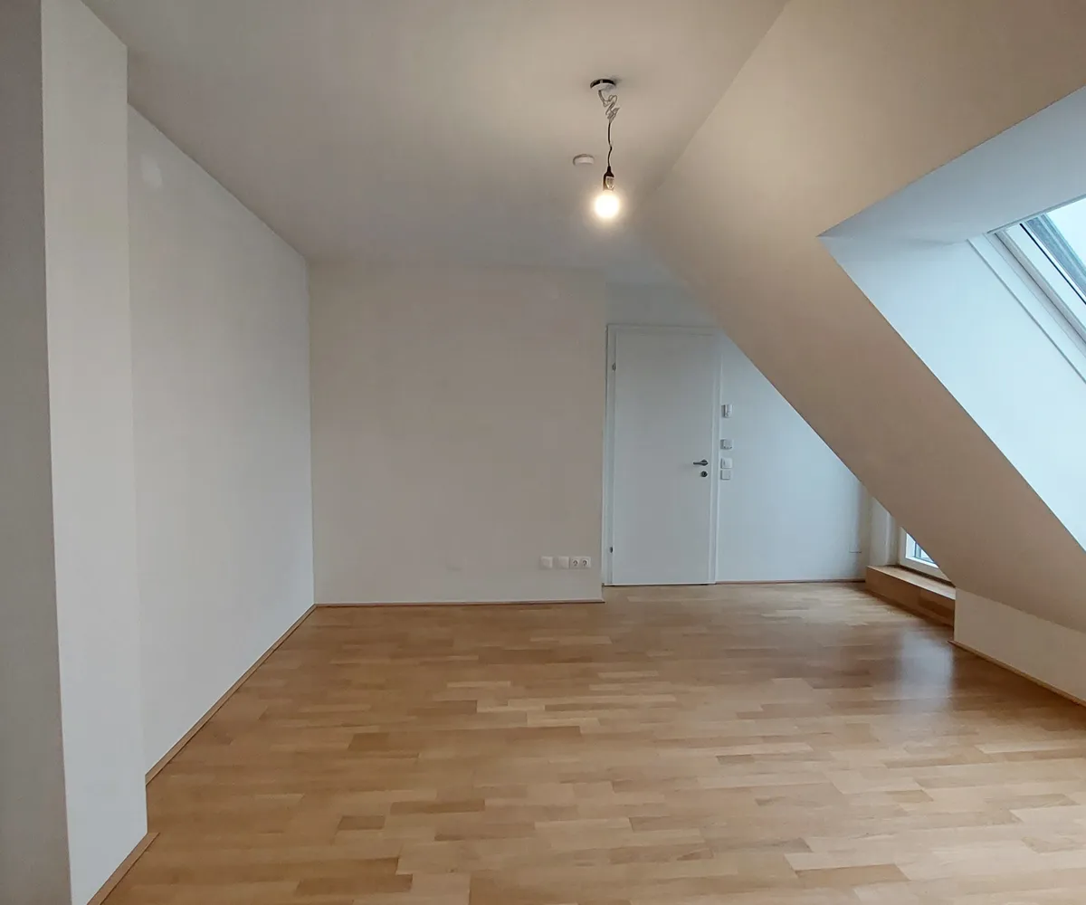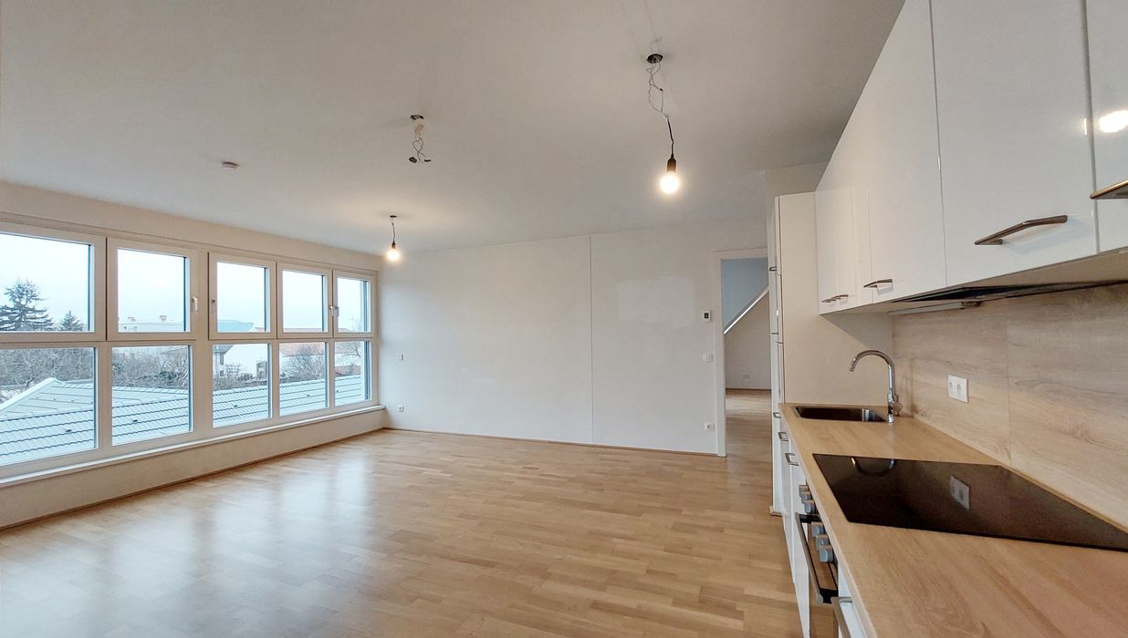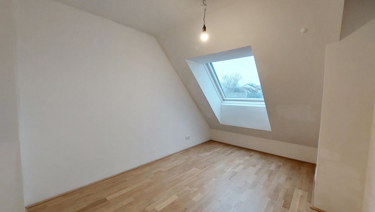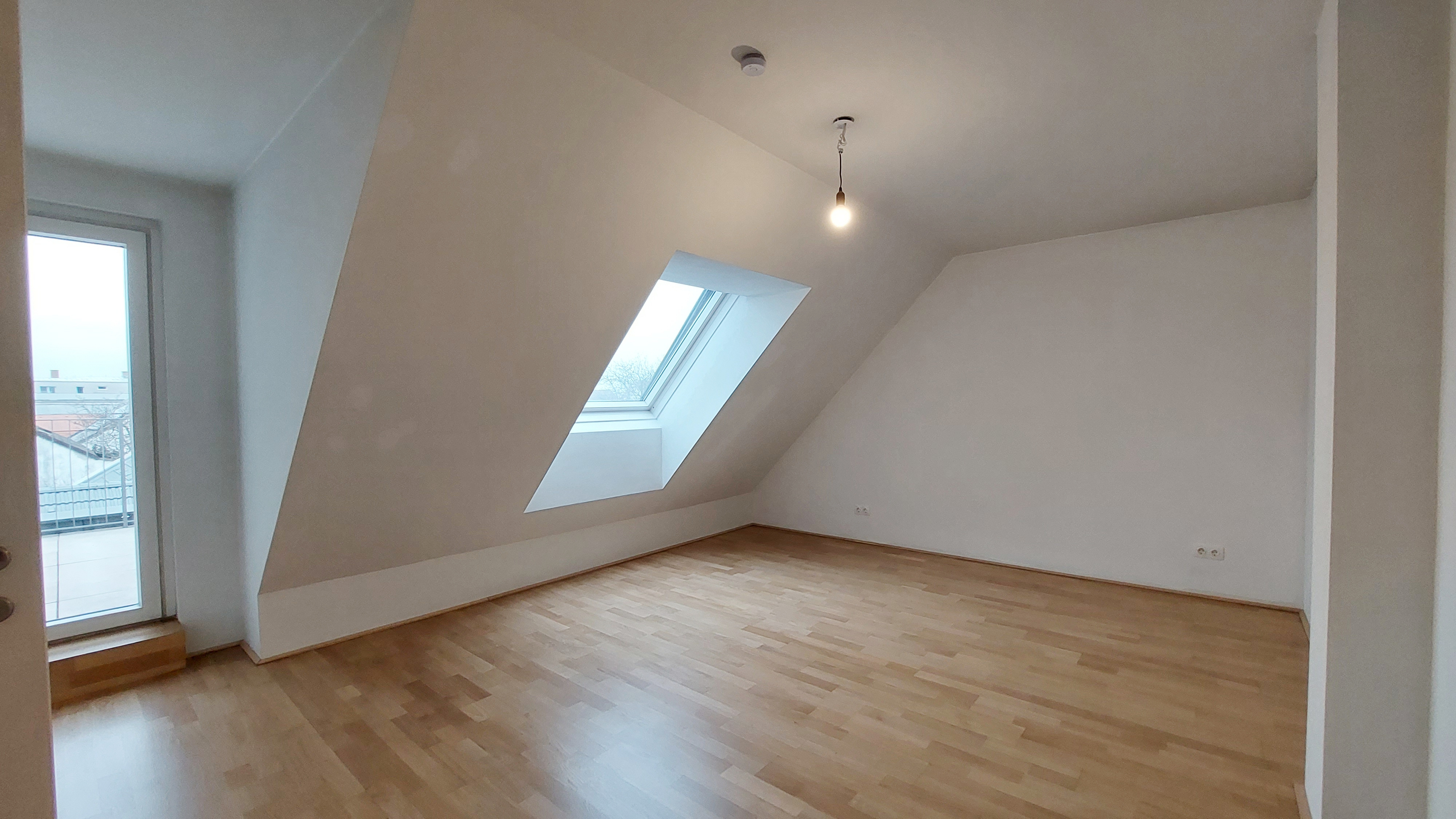 Die Wohnung befindet sich im 1.Dachgeschoß und verfügt über eine Wohnküche, zwei Schlafzimmer, ein Badezimmer mit Dusche, WC und Waschmaschinenanschluss, ein separates WC, sowie einen Vorraum. Zwei Balkone runden das Wohnerlebnis ab.