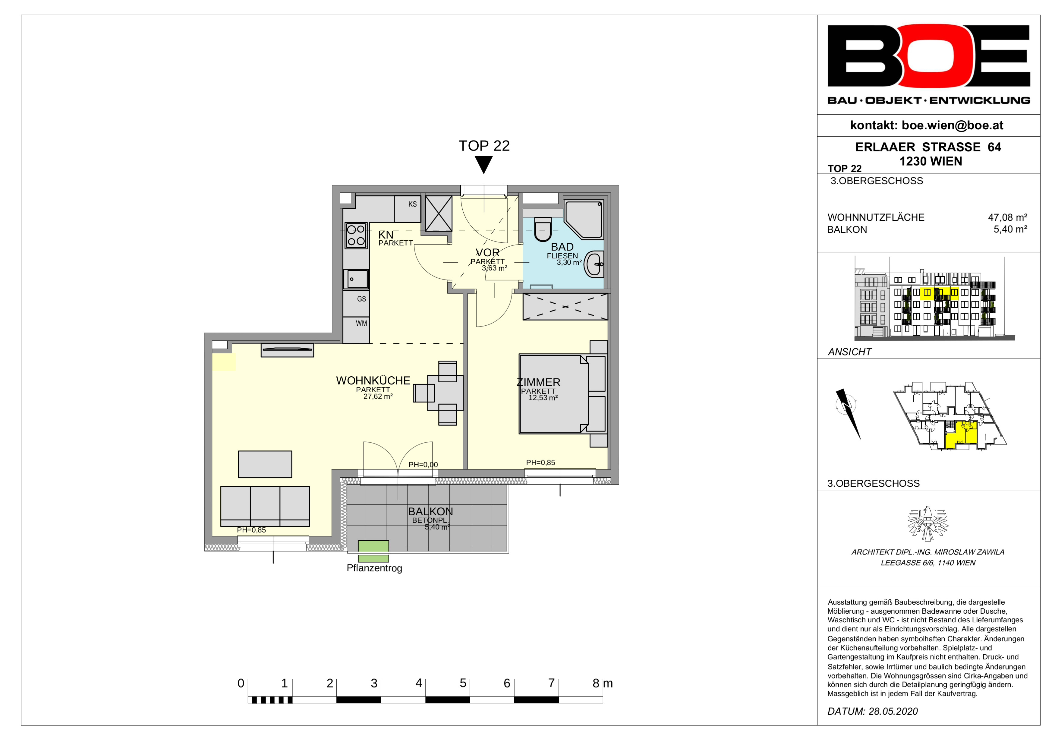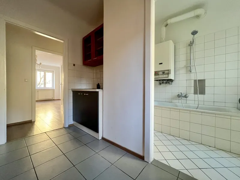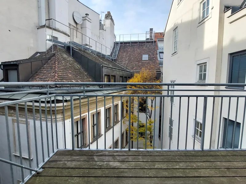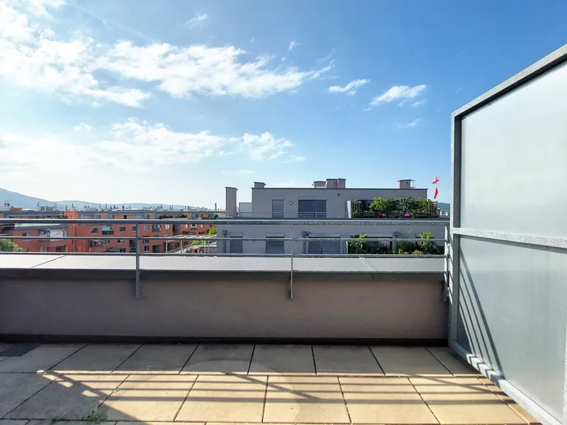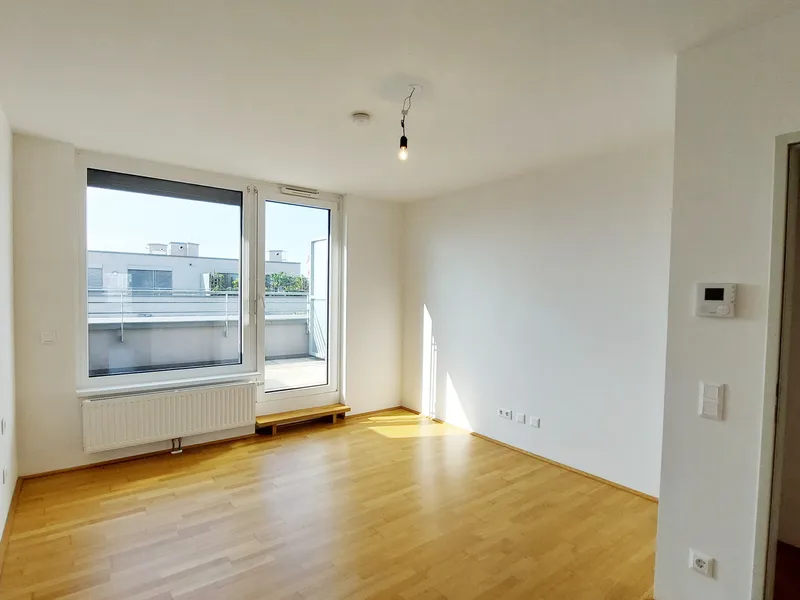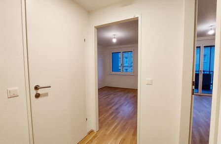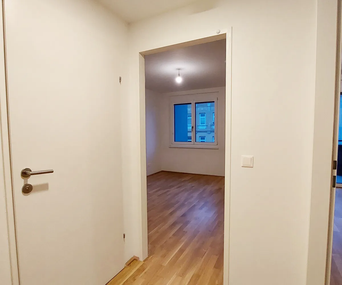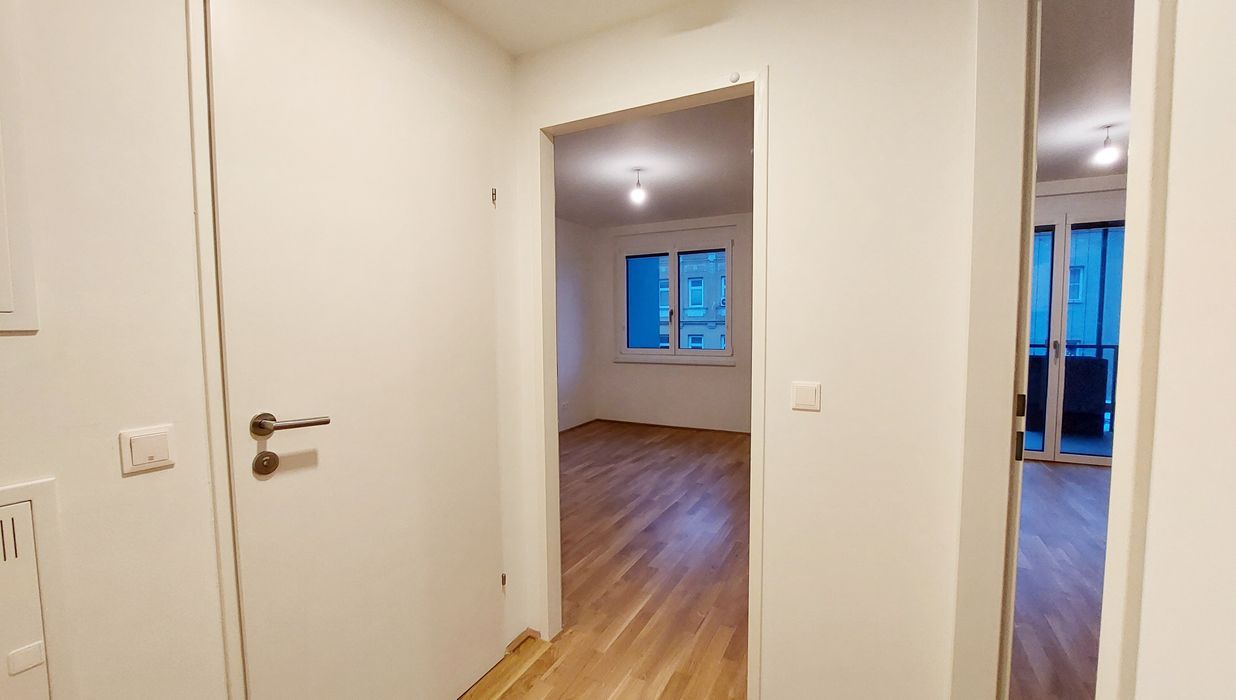 Die Wohnung selbst befindet sich im 3. Obergeschoss und verfügt über einen Wohnraum mit Küchenzeile, ein Schlafzimmer, ein Badezimmer mit Dusche und WC sowie einen Vorraum. Das Highlight der Wohnung ist der ca. 5,40 m² große Balkon.