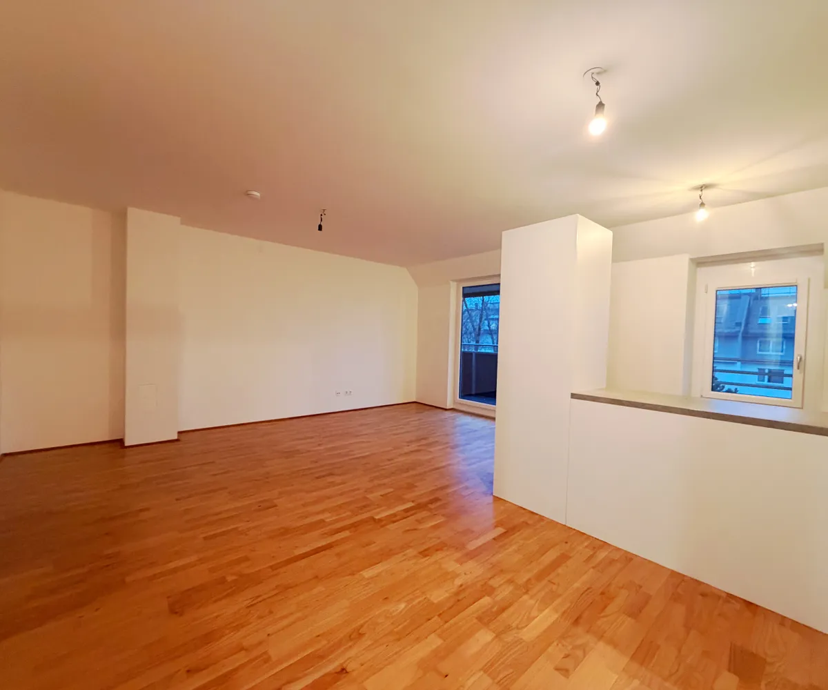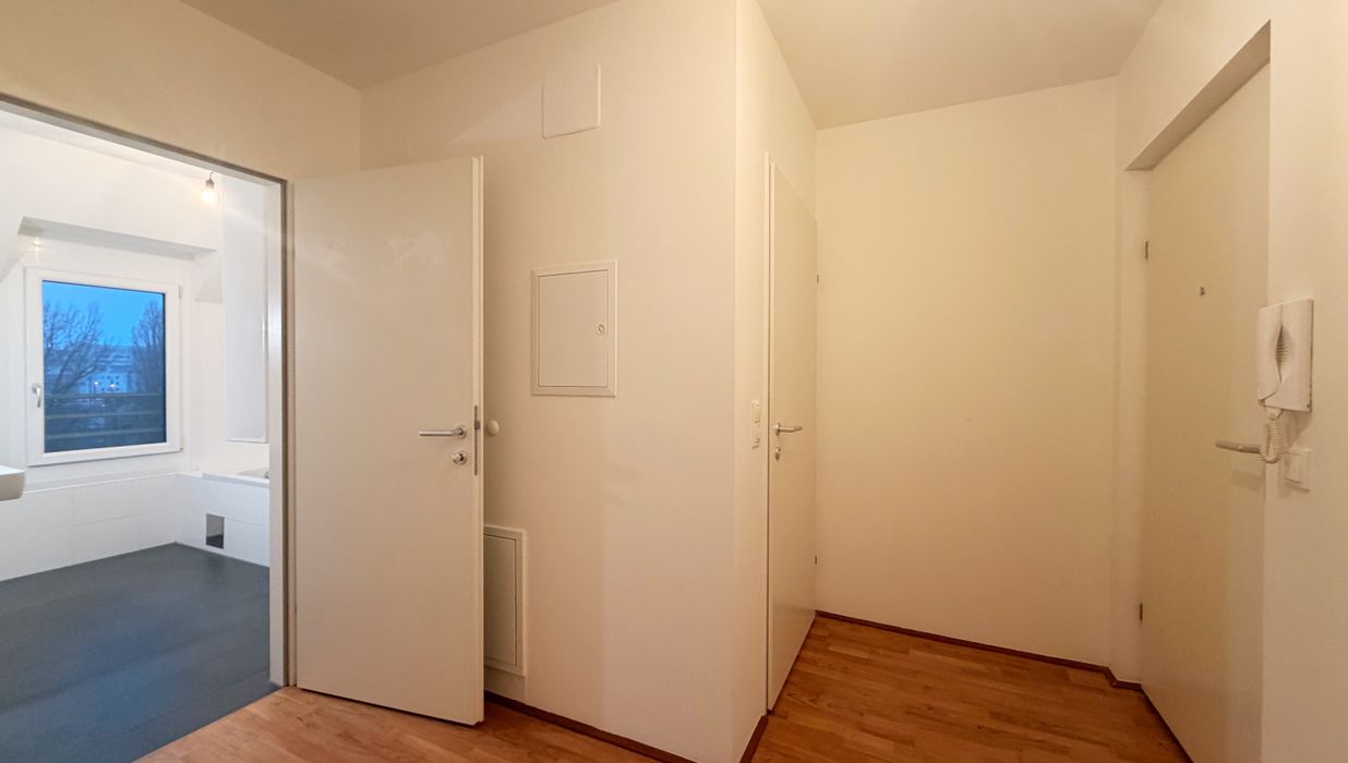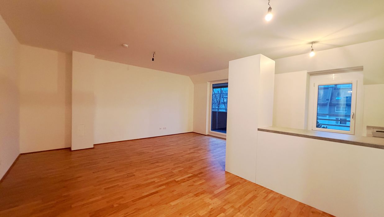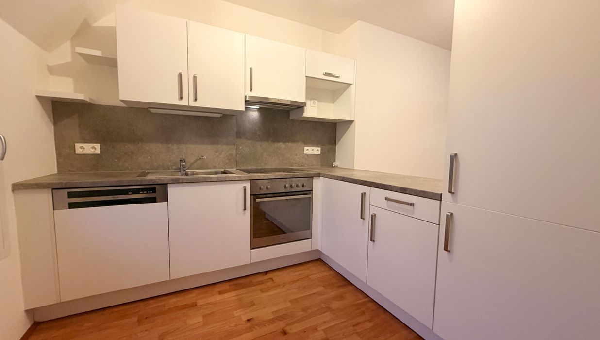 Die Wohnung befindet sich im 1. Dachgeschoss und verfügt über eine großzügige Wohnküche, 2 Schlafzimmer, ein Badezimmer mit Badewanne und Waschmaschinenanschluss, ein separates WC, sowie einen Vorraum.